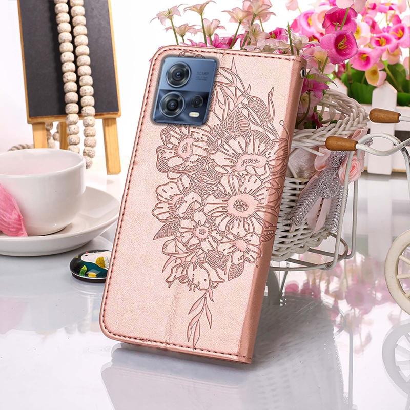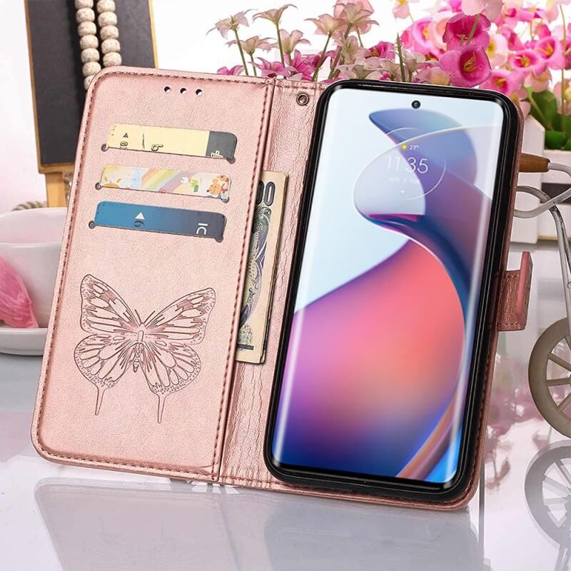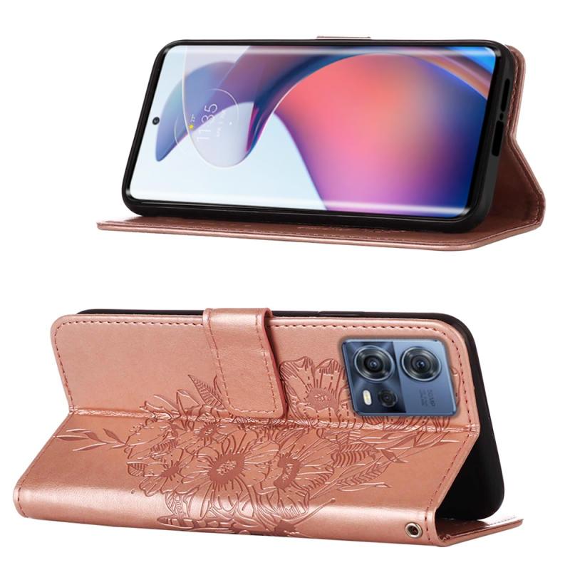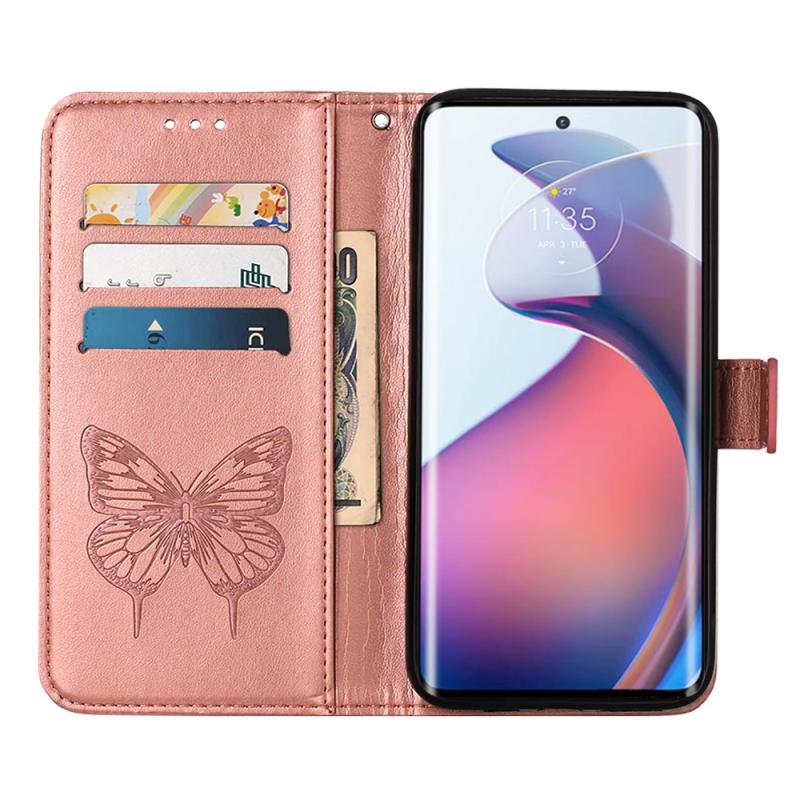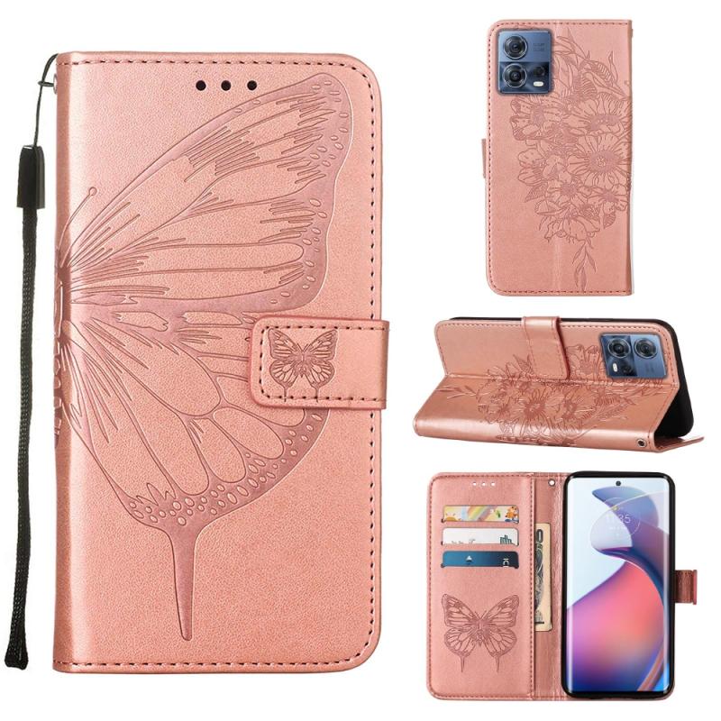 Θήκη τηλεφώνου δερμάτινη με ανάγλυφο σχέδιο πεταλούδας, τύπου flip, για Motorola Moto S30 Pro 5G (Γκρι)