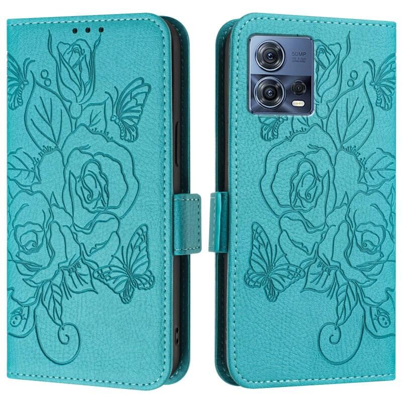 Για Motorola Moto S30 Pro 5G ανάγλυφο Rose RFID Anti-theft δερμάτινη θήκη τηλεφώνου (γαλάζιο)