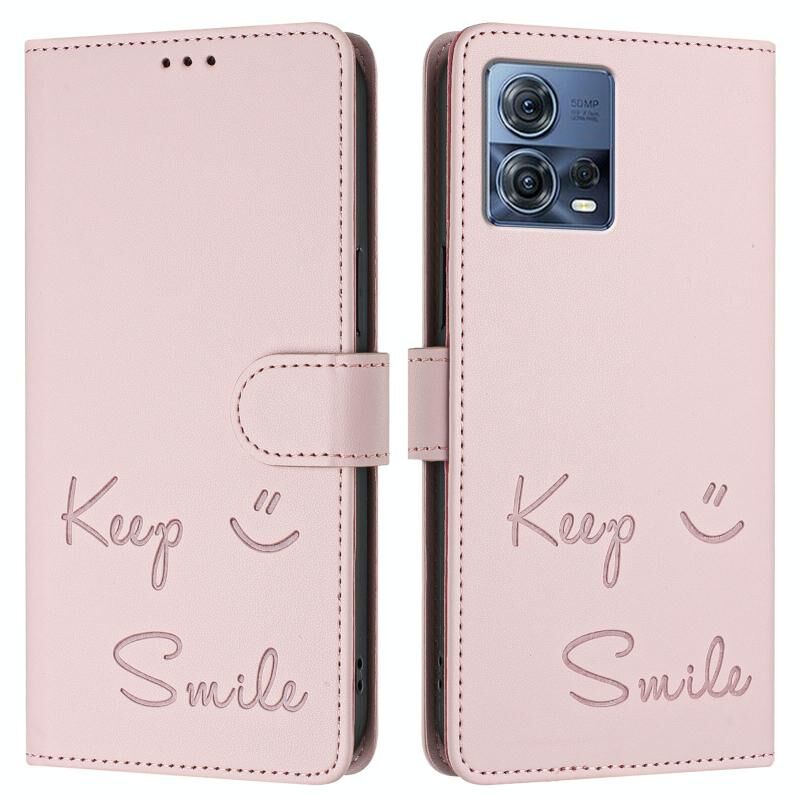 Θήκη τηλεφώνου δερμάτινη με ανάγλυφο χαμόγελο RFID για Motorola Moto S30 Pro 5G (ρόζ)
