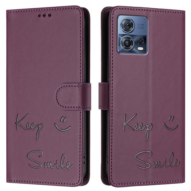 Θήκη τηλεφώνου δερμάτινη με ανάγλυφο χαμόγελο RFID για Motorola Moto S30 Pro 5G (Βιολετί)