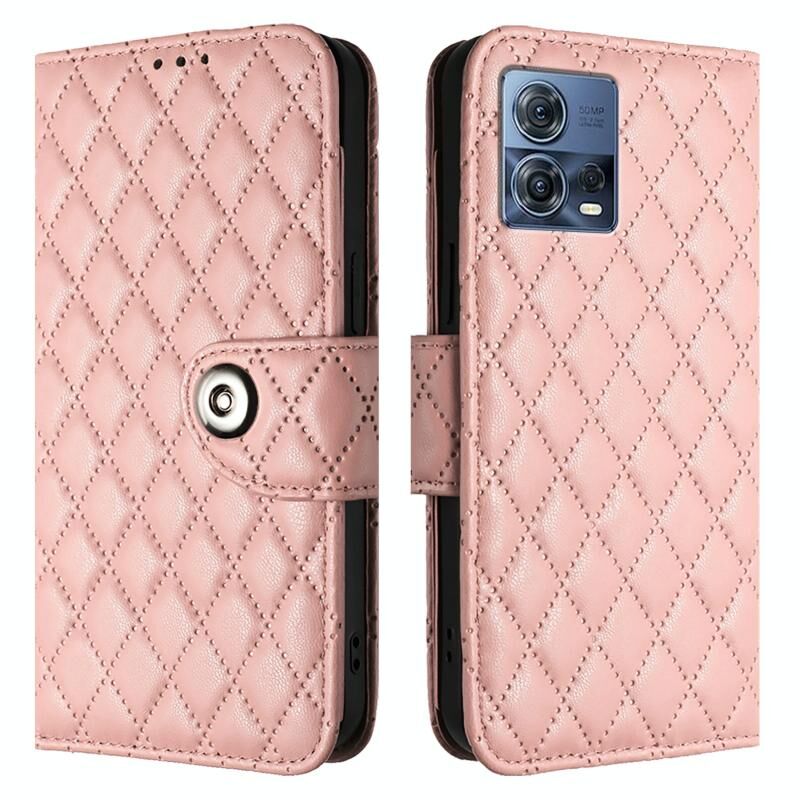 Για Motorola Moto S30 Pro Rhombic Texture Flip δερμάτινη θήκη τηλεφώνου με κορδόνι (ροζ κοραλλί)