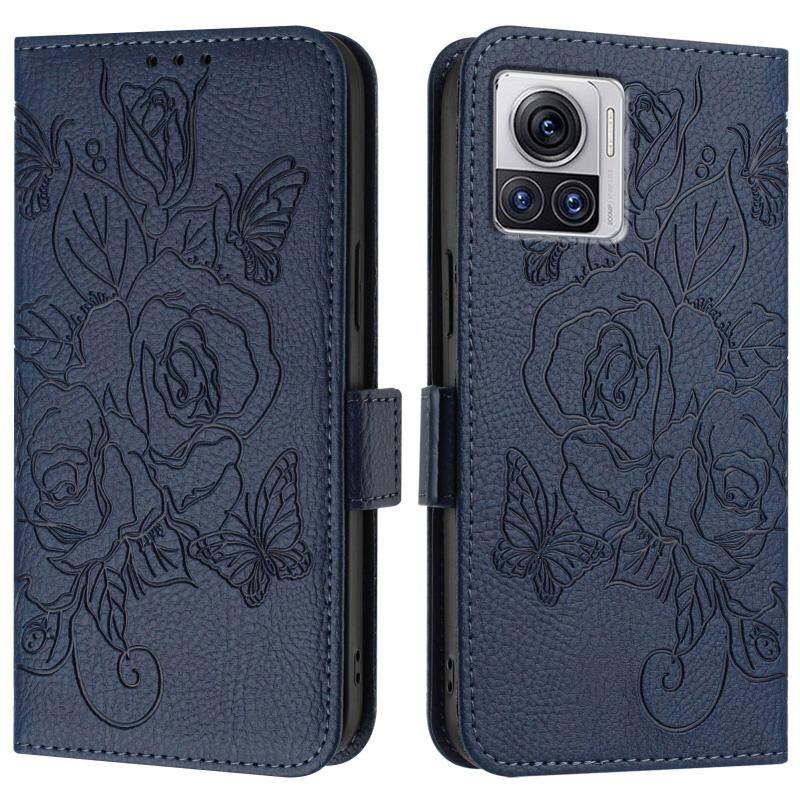 Για Motorola Moto X30 Pro 5G / Edge 30 Ultra ανάγλυφο Rose RFID Anti-theft Δερμάτινη θήκη τηλεφώνου (Σκούρο μπλε)