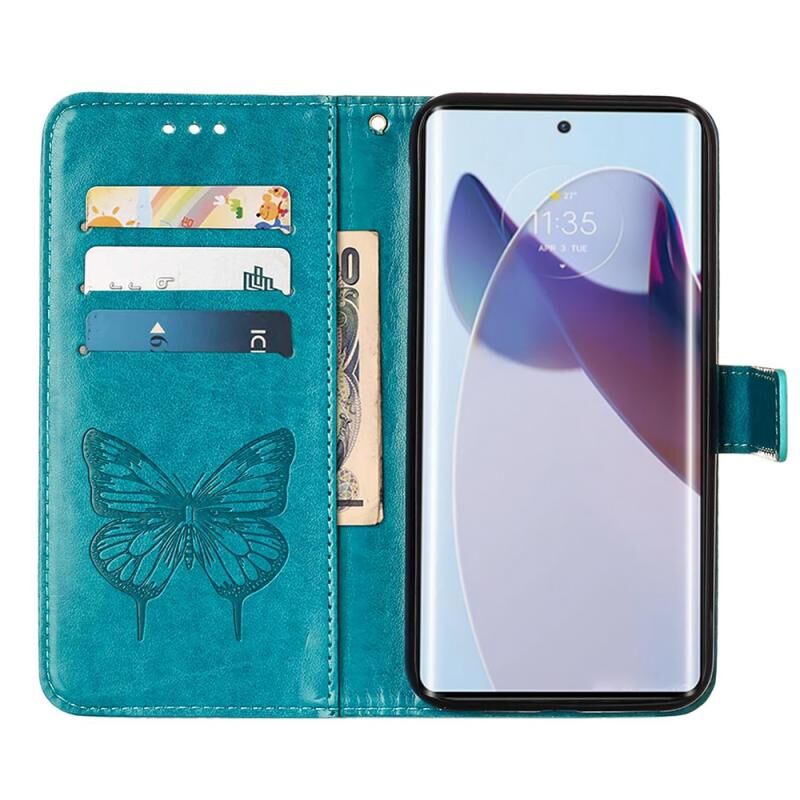 Θήκη τηλεφώνου δερμάτινη με ανάγλυφο σχέδιο πεταλούδας, τύπου flip, για Motorola Moto X30 Pro 5G (Μπλε)