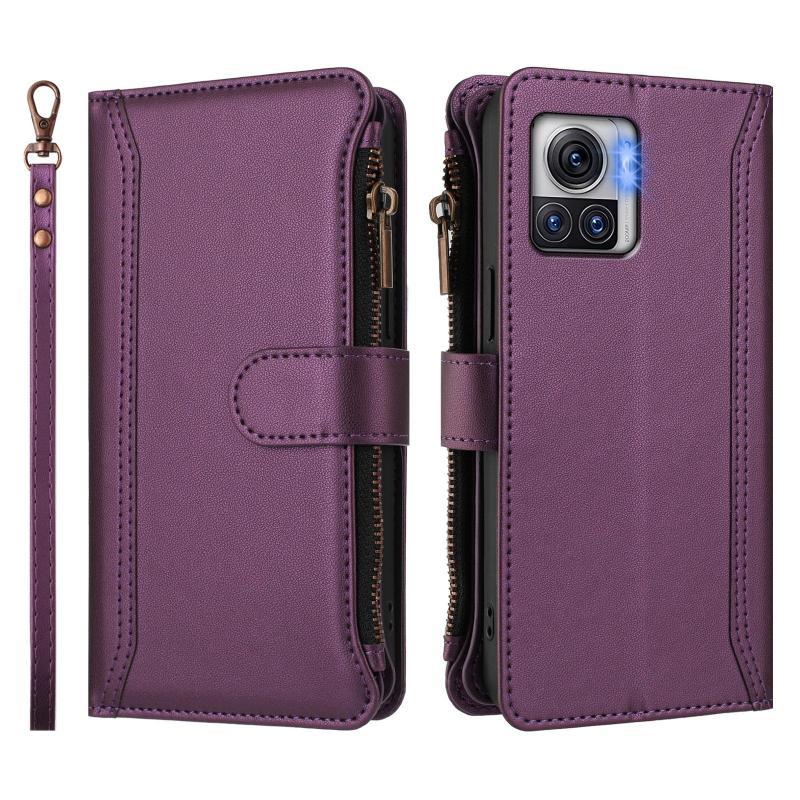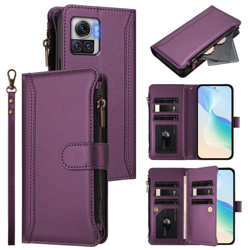 Για Motorola Moto X30 Pro / Edge 30 Ultra Μαγνητικό Κλείσιμο 9 Θήκες Κάρτας Δερμάτινη Θήκη με Φερμουάρ και Λουρί Χεριού (Σκούρο Μπλε)