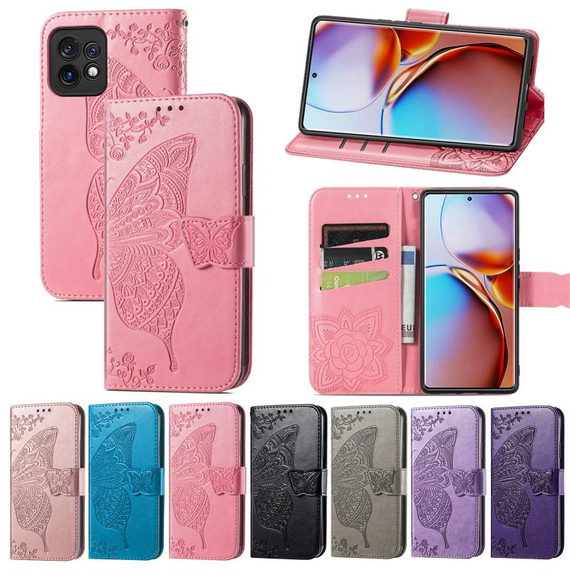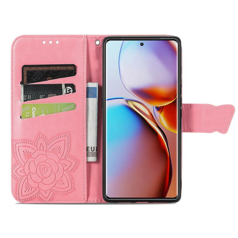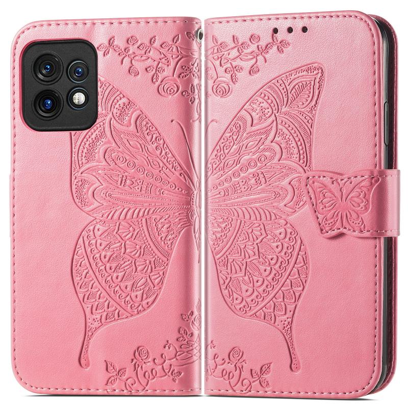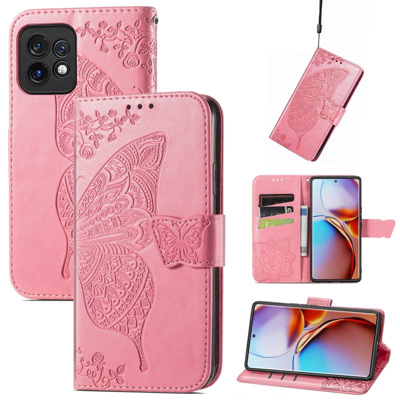 For Motorola Moto X40 Butterfly Love Flower Embossed Leather Phone Case(Pink)