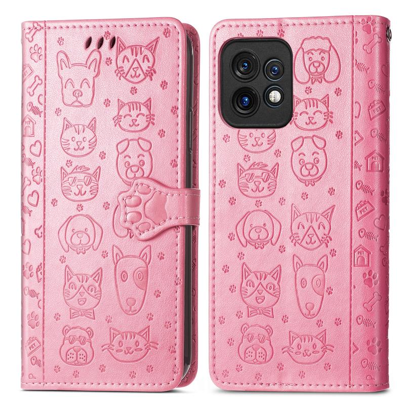 For Motorola Moto X40 Cute Cat and Dog Embossed Flip Leather Phone Case(Pink)