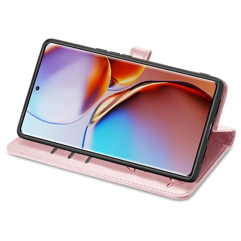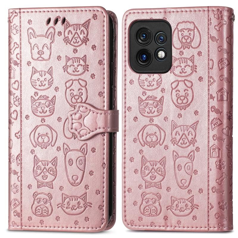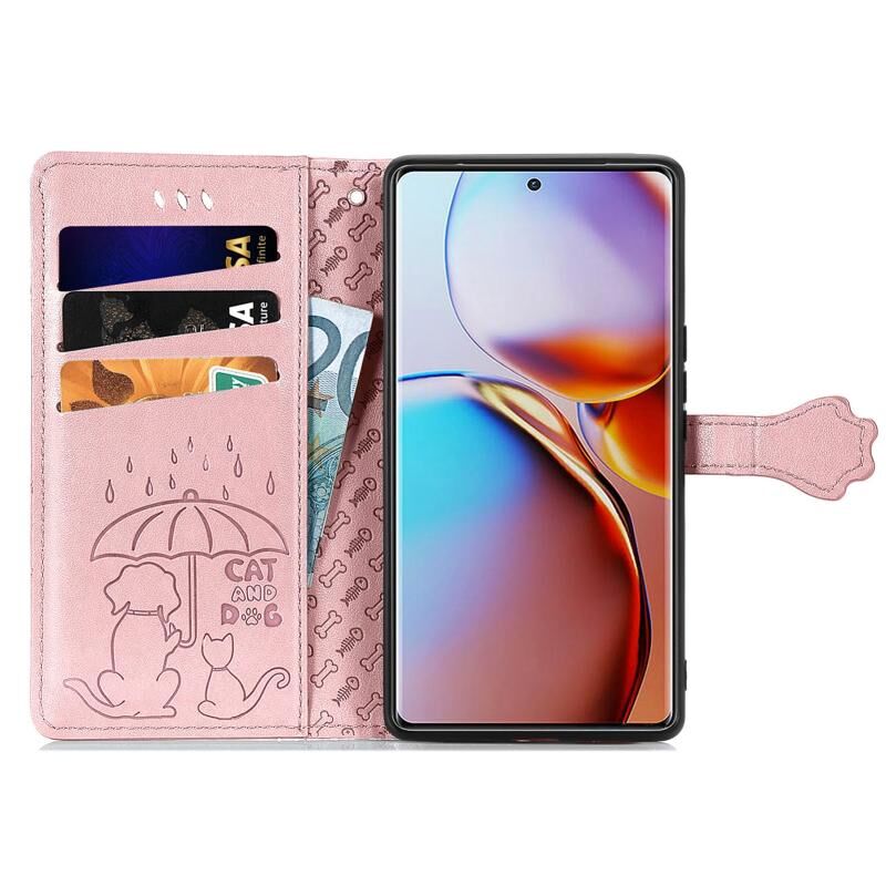 Θήκη τηλεφώνου από δέρμα με ανάγλυφα σχέδια χαριτωμένης γάτας και σκύλου για Motorola Moto X40 (Μπλε)