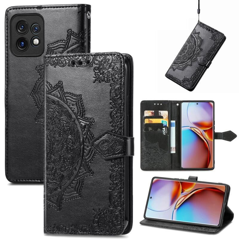 Για Motorola Moto X40 Mandala λουλούδι ανάγλυφο δερμάτινη θήκη τηλεφώνου (μαύρο)