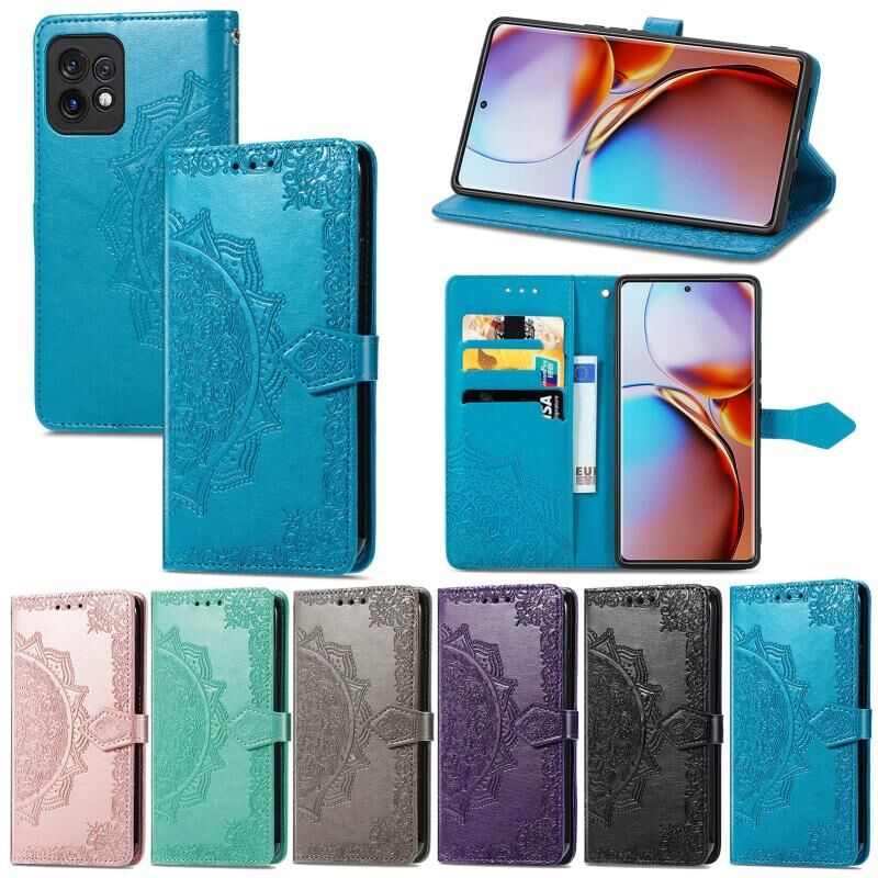 Για Motorola Moto X40 Mandala λουλούδι ανάγλυφο δερμάτινη θήκη τηλεφώνου (γκρι)