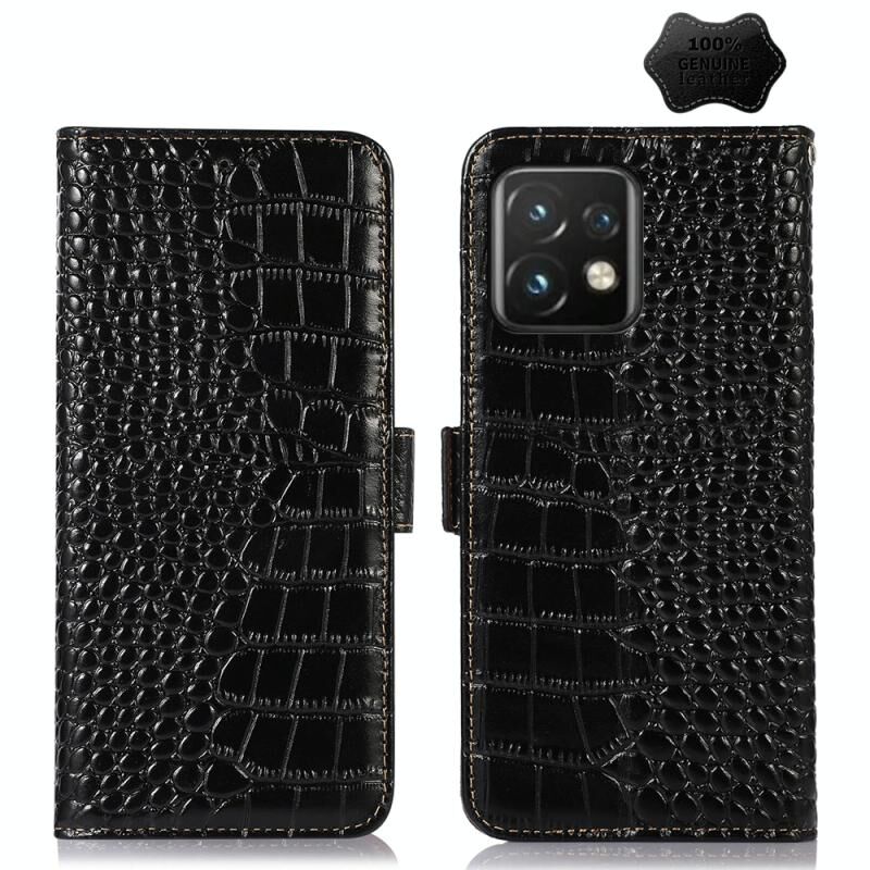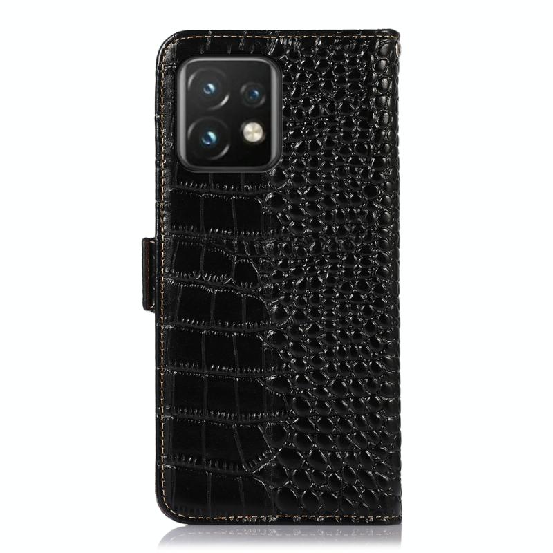 Θήκη τηλεφώνου από δέρμα αγελάδας με επένδυση Crocodile Top Layer για Motorola Moto X40 Pro (Μαύρο)