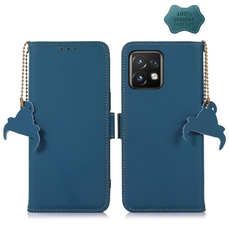 Θήκη τηλεφώνου από γνήσιο δέρμα με μαγνητικό κλείσιμο RFID για Motorola Moto X40 Pro (Μπλε)