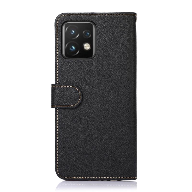 Θήκη κινητού τηλεφώνου Motorola Moto X40 Pro KHAZNEH από δέρμα Lychee με υφή, με προστασία RFID (Μαύρο)