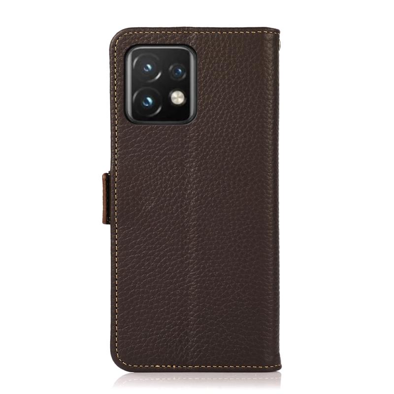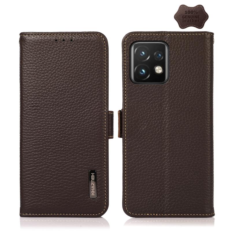 Θήκη τηλεφώνου Motorola Moto X40 Pro KHAZNEH με μαγνητικό κλείσιμο, γνήσιο δέρμα Litchi, RFID (Καφέ)
