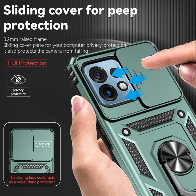 Για Motorola Moto X40 Pro Συρόμενη θήκη τηλεφώνου με κάλυμμα κάμερας (σκούρο πράσινο)