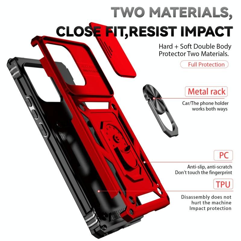 Για το Motorola Moto X40 Pro Συρόμενη θήκη τηλεφώνου με κάλυμμα κάμερας (κόκκινο)