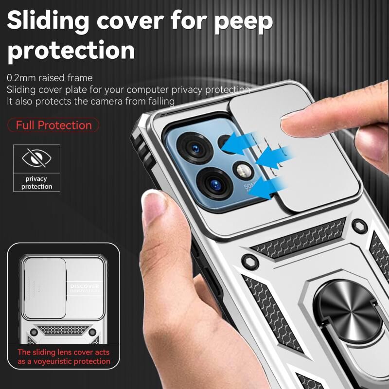 Για το Motorola Moto X40 Pro Συρόμενη θήκη τηλεφώνου με κάλυμμα κάμερας (ασημί)