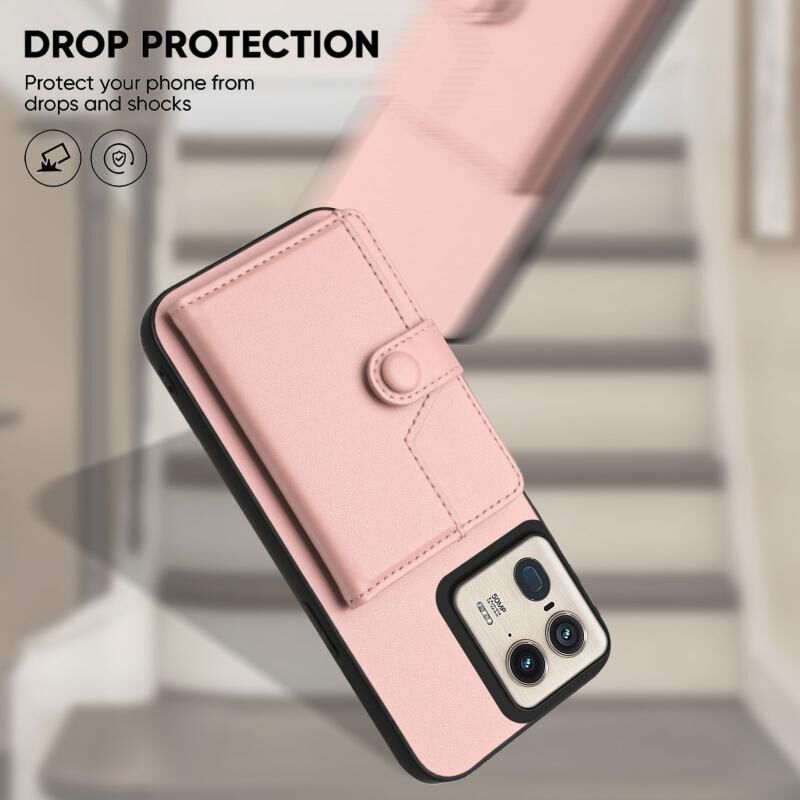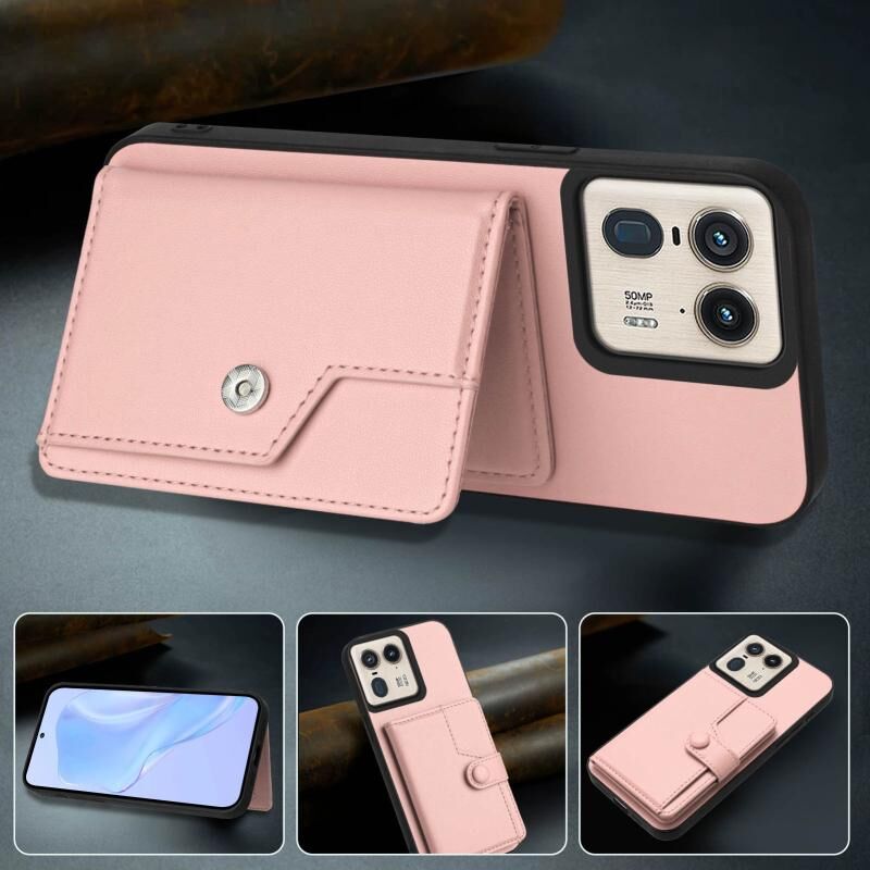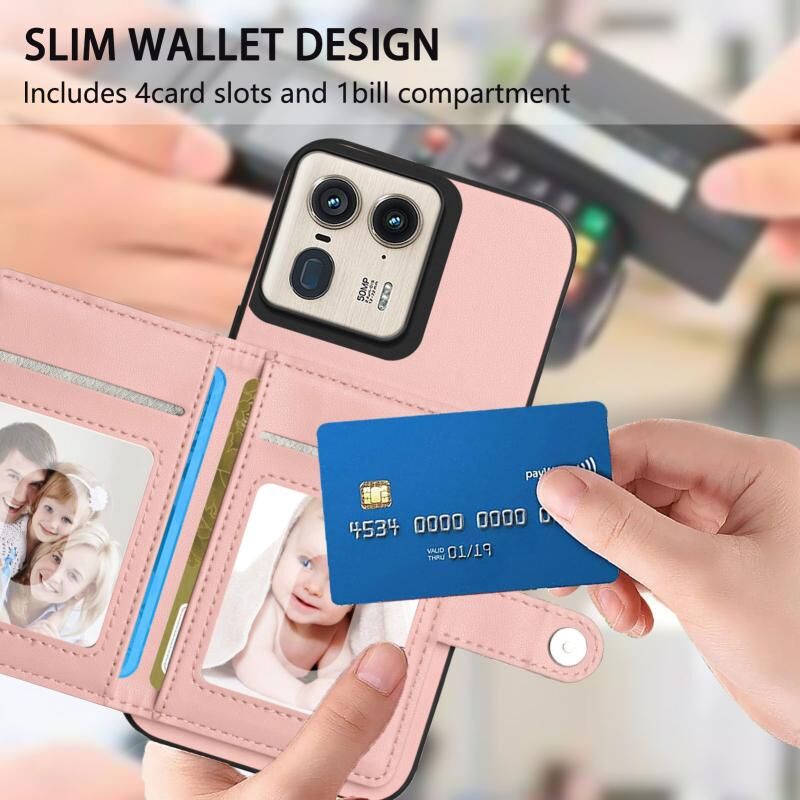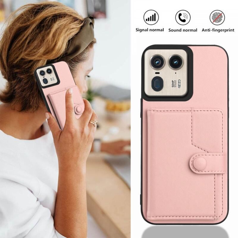 Θήκη κινητού τηλεφώνου με κάρτες και προστασία RFID κατά της κλοπής για Motorola Moto X50 Ultra (Ροζ)