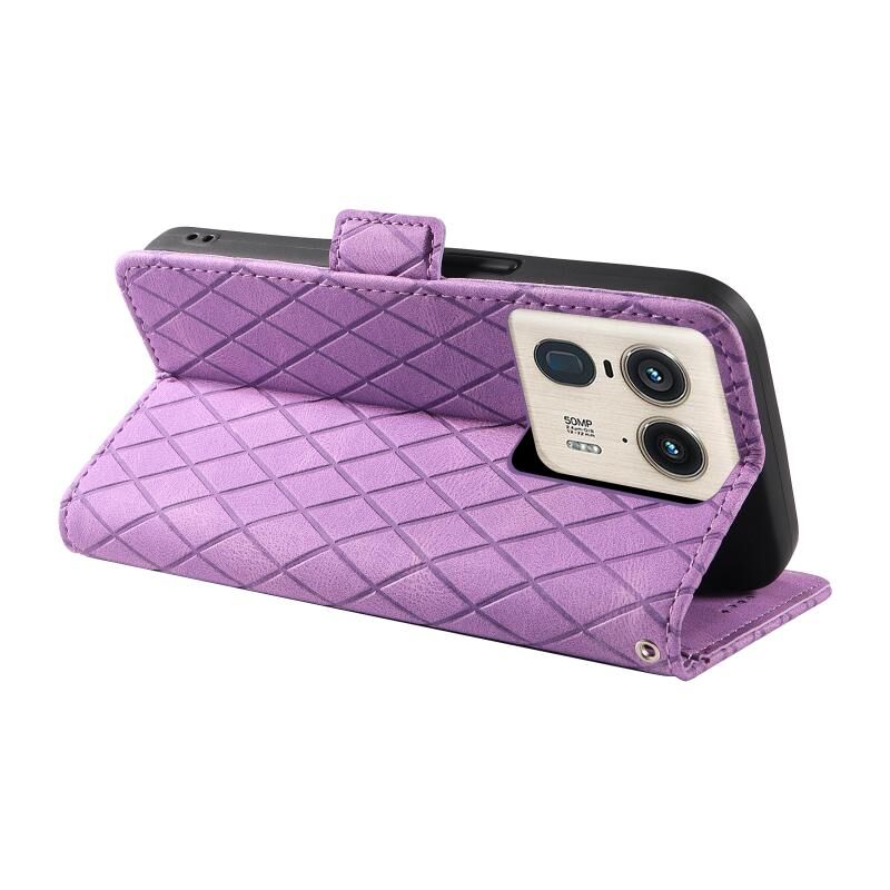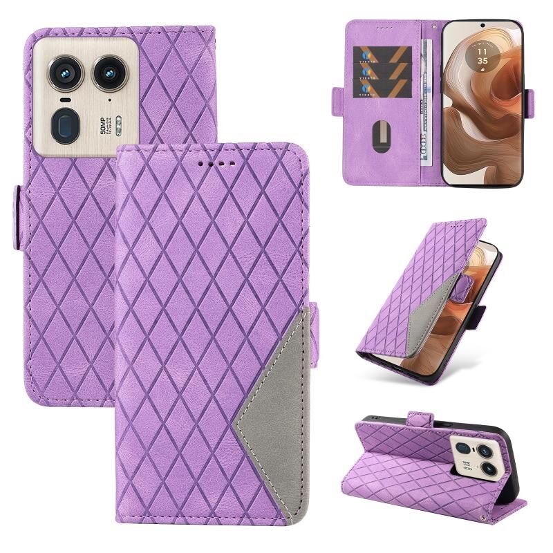 Για το Motorola Moto X50 Ultra Διπλό χρώμα Rhombic Lattice δερμάτινη θήκη τηλεφώνου (μωβ)