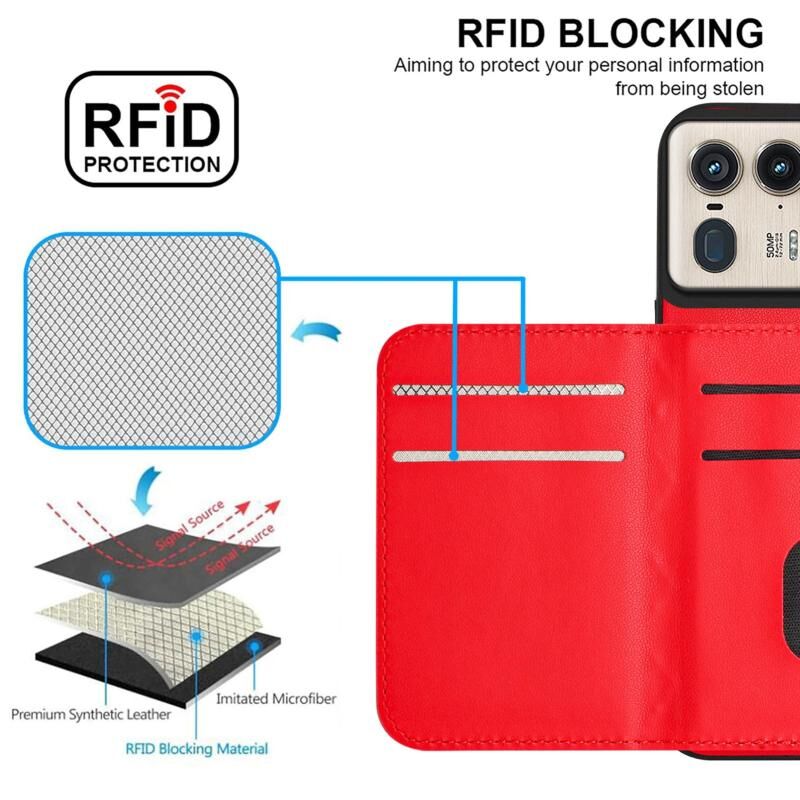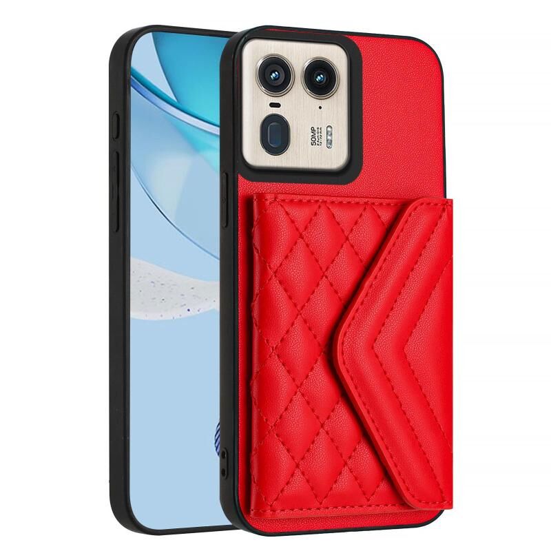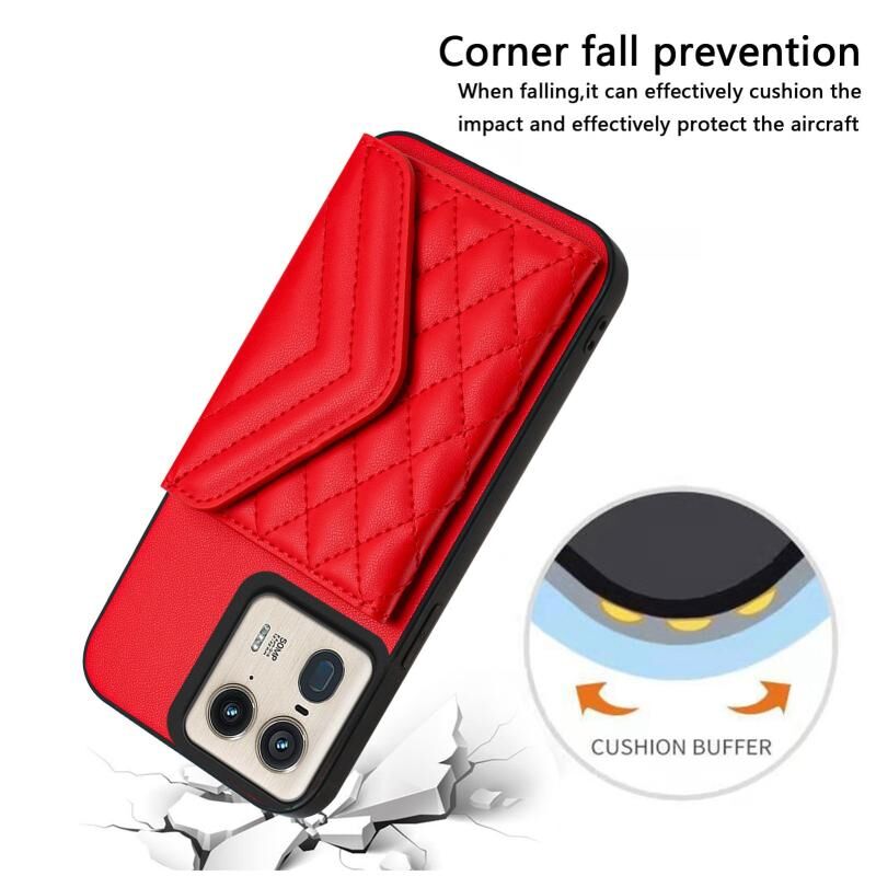 Για Motorola Moto X50 Ultra Rhombic Texture Card Bag RFID υπόθεση τηλεφώνου με μακρύ κορδόνι (κόκκινο)