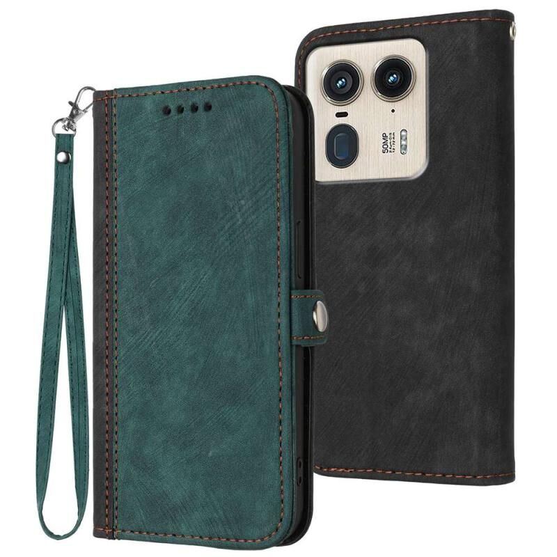 Θήκη τηλεφώνου από δέρμα με διπλό πτυσσόμενο λουρί χειρός και πλευρική αγκράφα για Motorola Moto X50 Ultra (Βασιλικό Μπλε)
