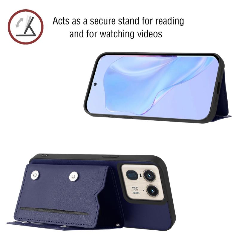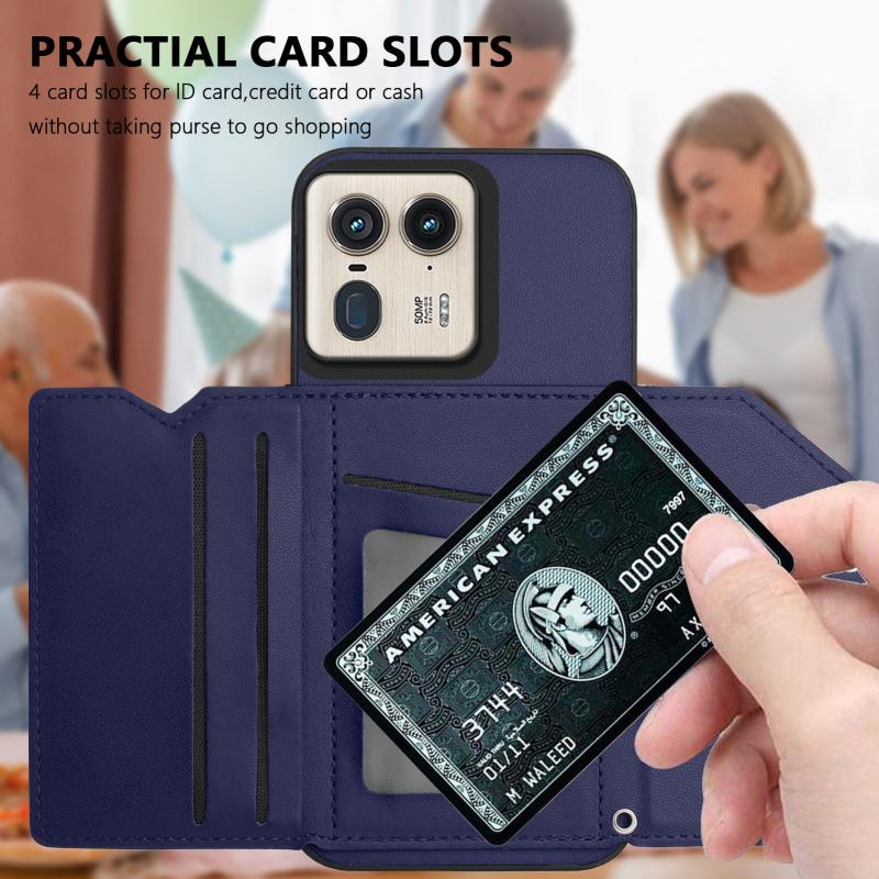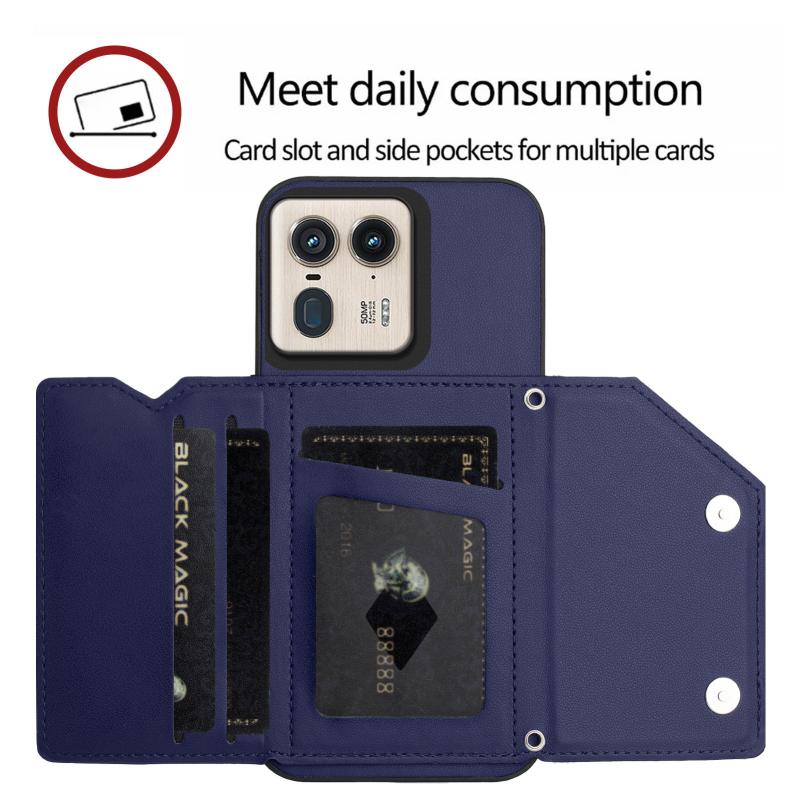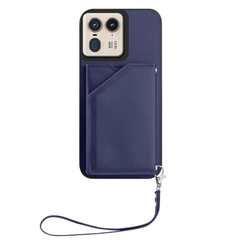 For Motorola Moto X50 Ultra Skin Feel Four Card Slots Phone Case with Wrist Strap(Blue)
