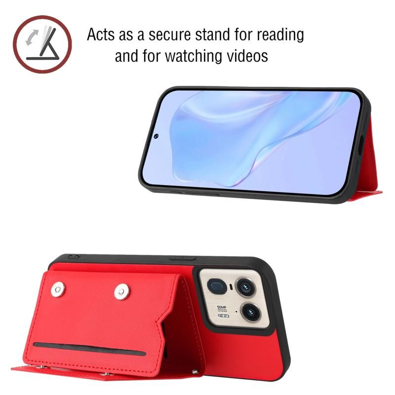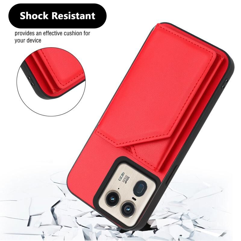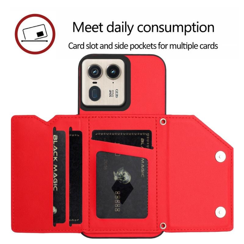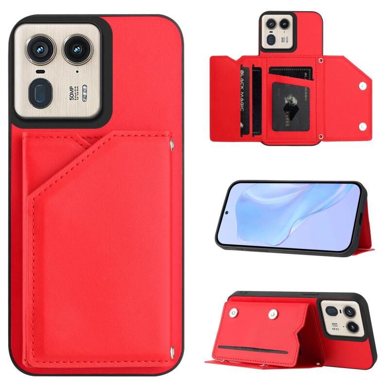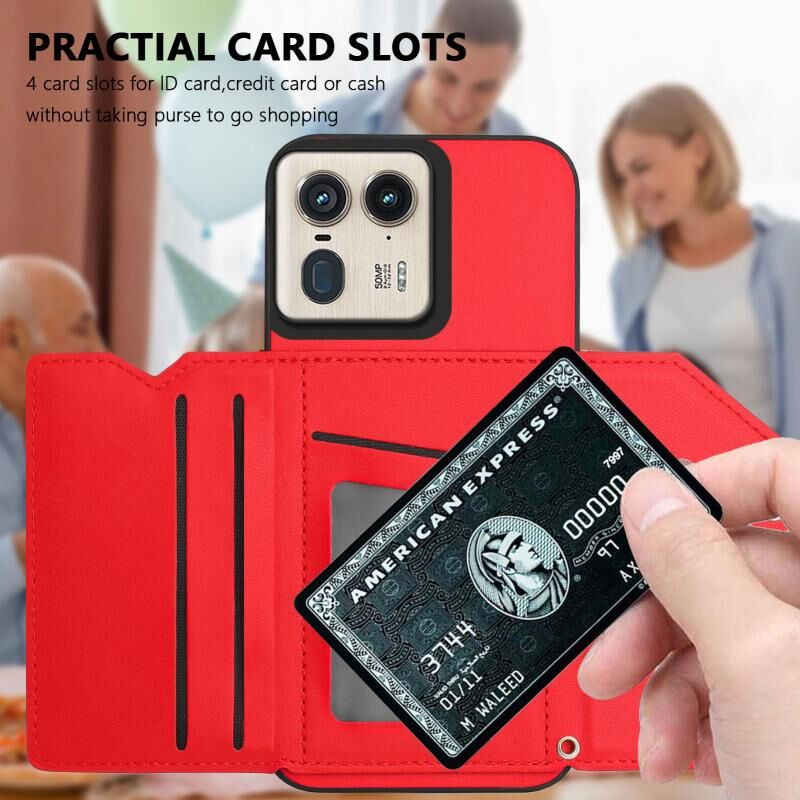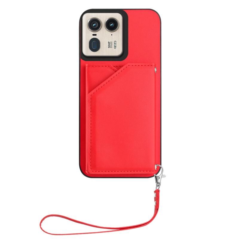 For Motorola Moto X50 Ultra Skin Feel Four Card Slots Phone Case with Wrist Strap(Red)