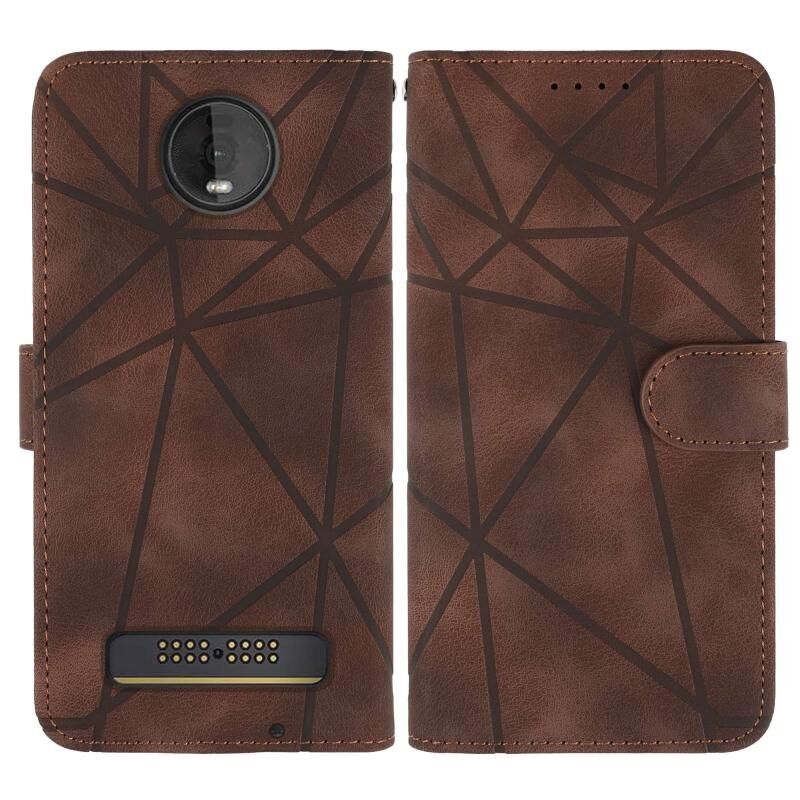 Για Motorola Moto Z4 Skin Feel Γεωμετρικές γραμμές δερμάτινη θήκη τηλεφώνου (καφέ)