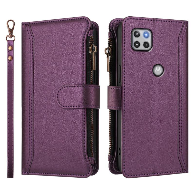 Για Motorola One 5G Ace Μαγνητικό Κλείσιμο 9 Θήκες Κάρτας Δερμάτινη Θήκη με Φερμουάρ και Λουρί Χεριού (Σκούρο Μπλε)