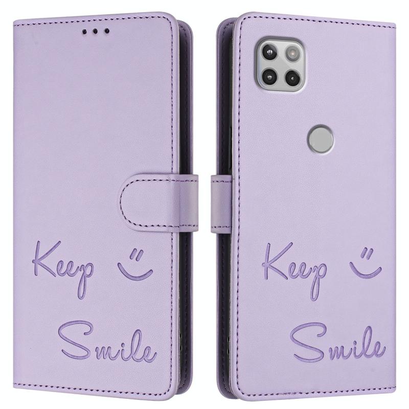 Θήκη τηλεφώνου δερμάτινη με ανάγλυφο RFID για Motorola One 5G Ace/Moto G 5G (Ανοιχτό Μωβ)