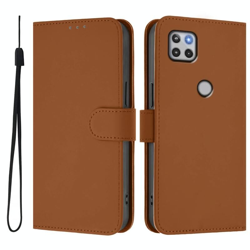 Για το Motorola One 5G Ace Skin Feel Solid Color Δερμάτινη θήκη τηλεφώνου με κορδόνι (καφέ)
