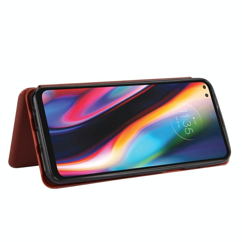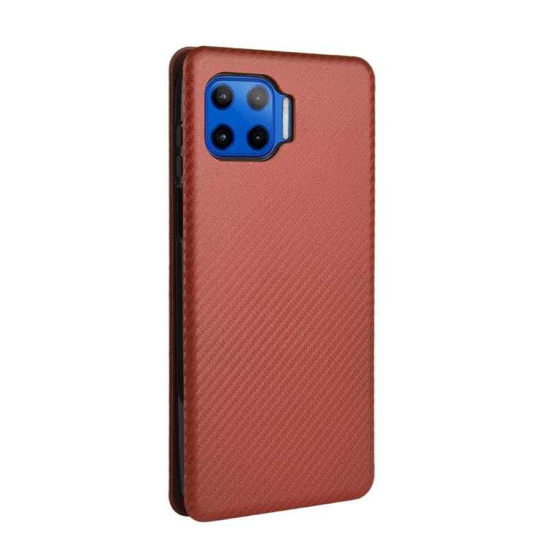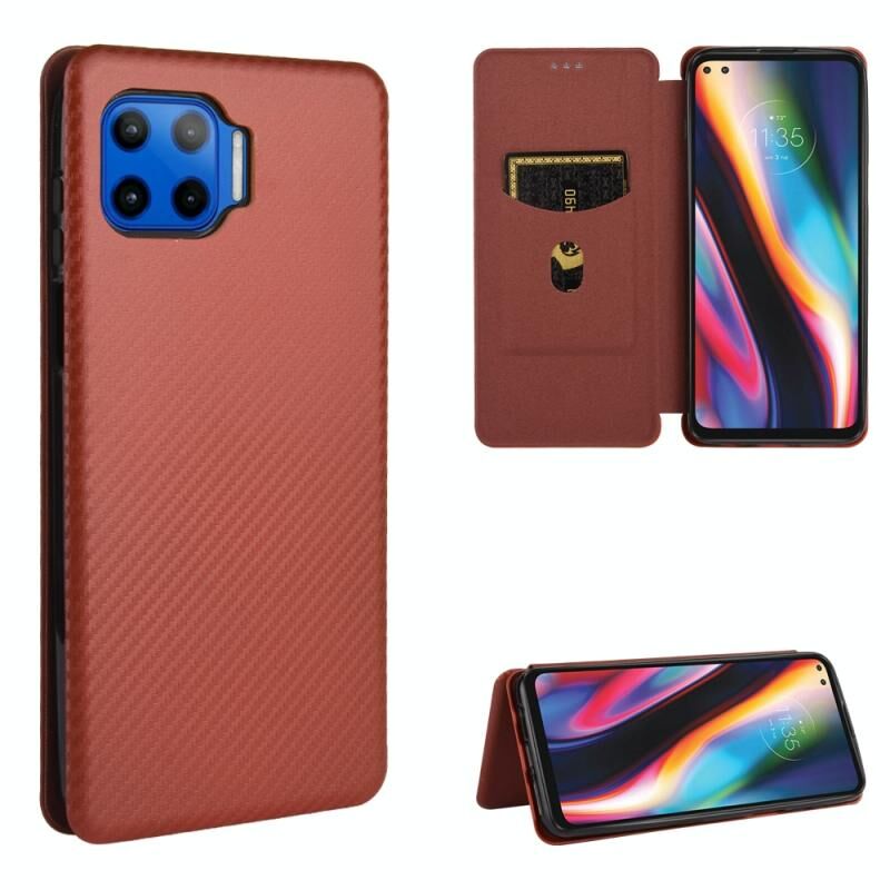 For Motorola One 5G / Moto G 5G Plus Carbon Fiber Texture Horizontal Flip TPU + PC + PU Leather Case with Card Slot(Brown)
