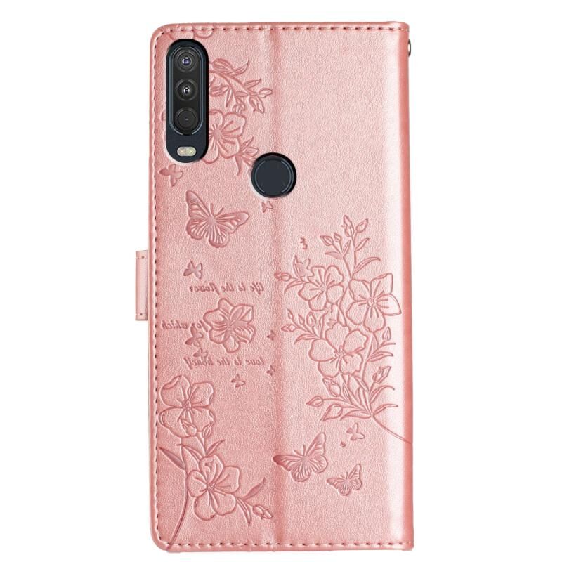 Θήκη κινητού τηλεφώνου από δέρμα για Motorola One Action - Πεταλούδες και Λουλούδια (Χρυσό)