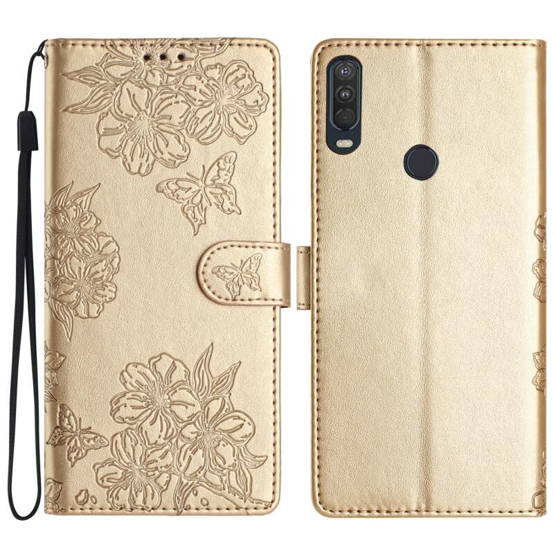 Θήκη τηλεφώνου Motorola One Action Cherry Blossom Butterfly Skin Feel Embossed PU (Χρυσός)