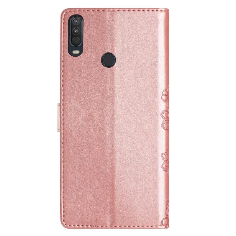 Θήκη τηλεφώνου Motorola One Action Cherry Blossom Butterfly Skin Feel Embossed PU (Ροζ χρυσός)