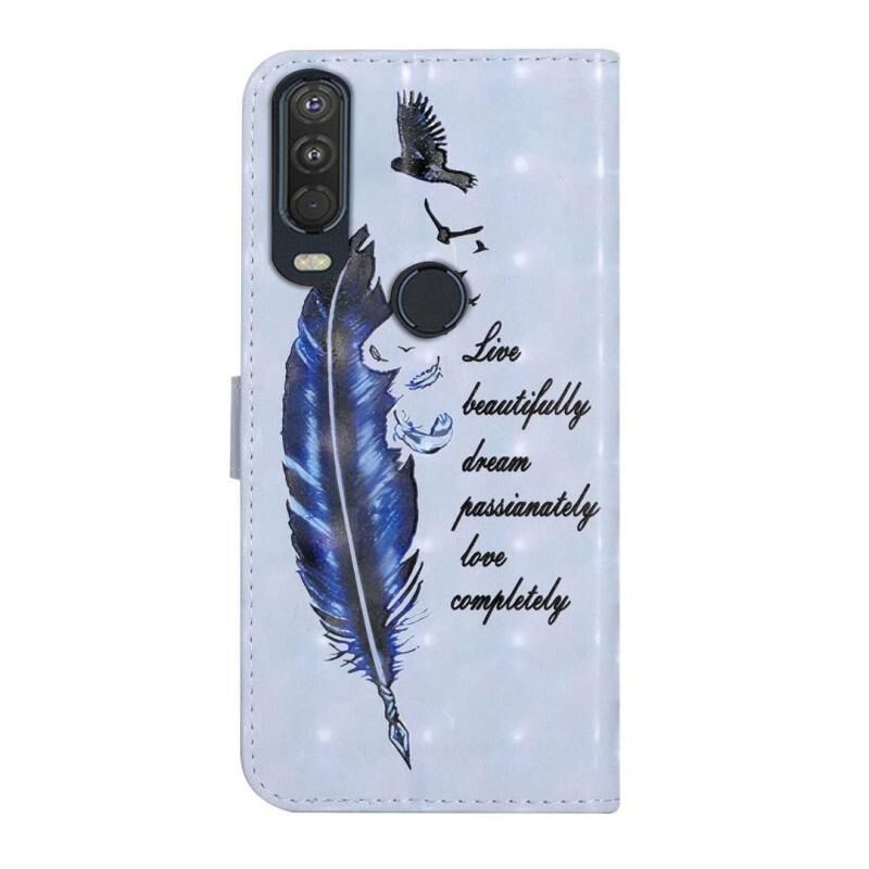 Θήκη τηλεφώνου δερμάτινη με ανάγλυφο σχέδιο 3D για Motorola One Action (Μπλε Πεταλούδες)