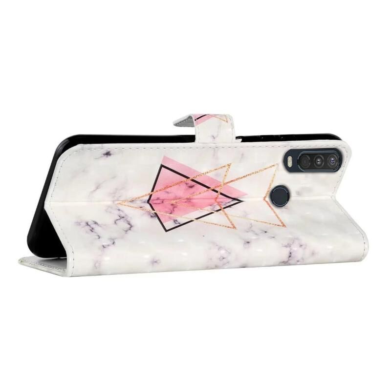 Θήκη τηλεφώνου δερμάτινη με ανάγλυφο σχέδιο 3D για Motorola One Action (Τριγωνικό Μάρμαρο)