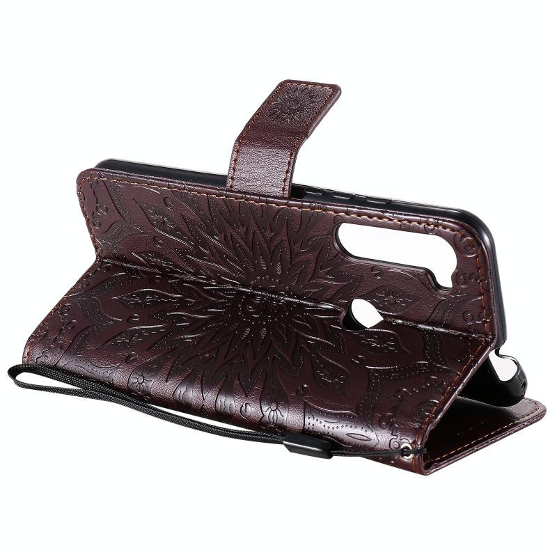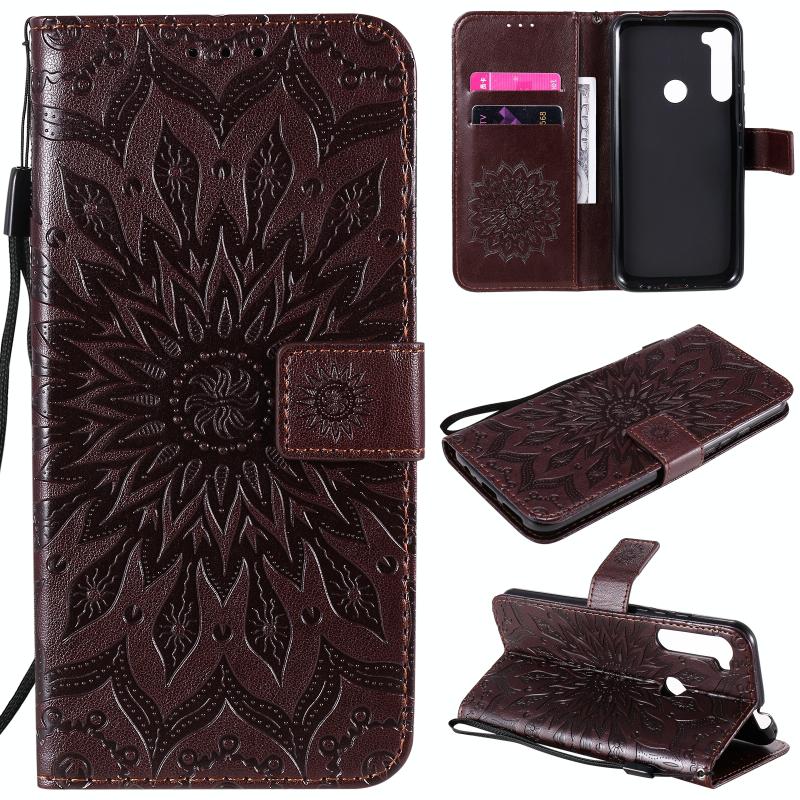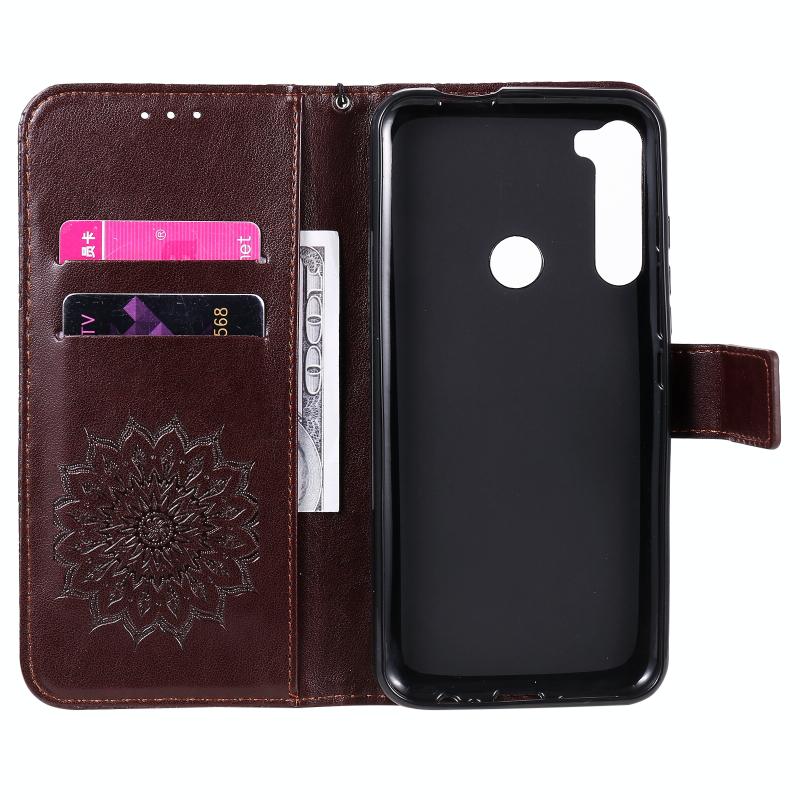For Motorola One Fusion Plus Pressed Printing Sunflower Pattern Horizontal Flip PU Leather Case with Holder & Card Slots & Wallet & Lanyard(Brown)