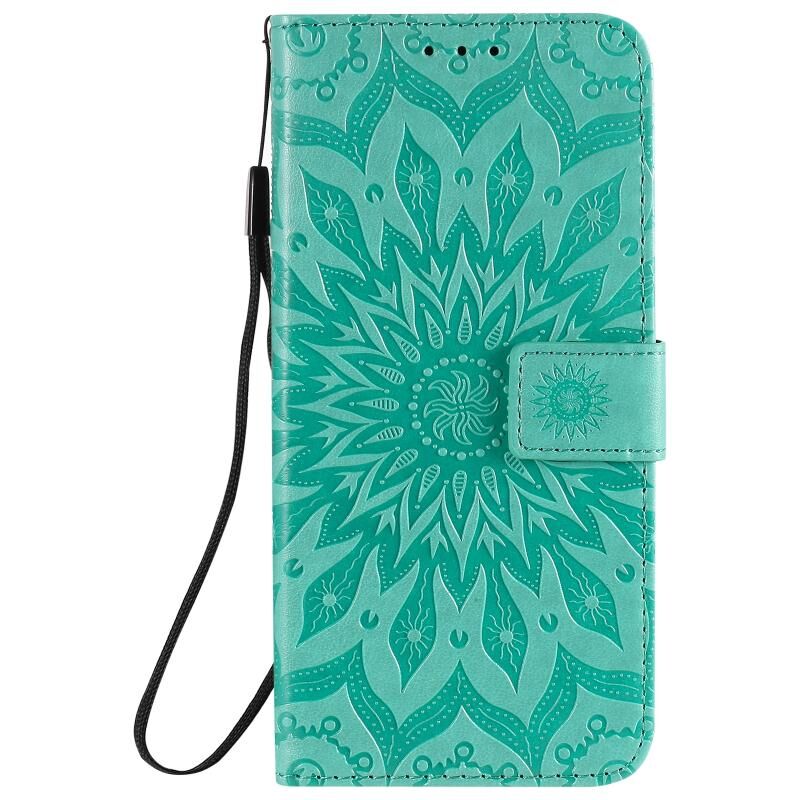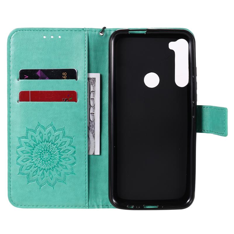For Motorola One Fusion Plus Pressed Printing Sunflower Pattern Horizontal Flip PU Leather Case with Holder & Card Slots & Wallet & Lanyard(Green)