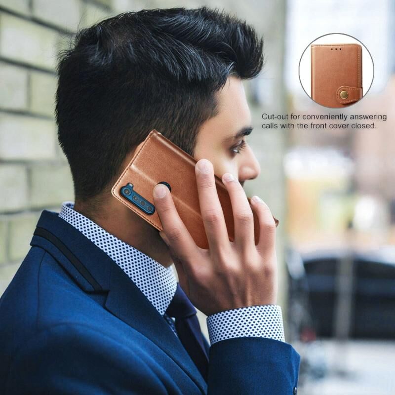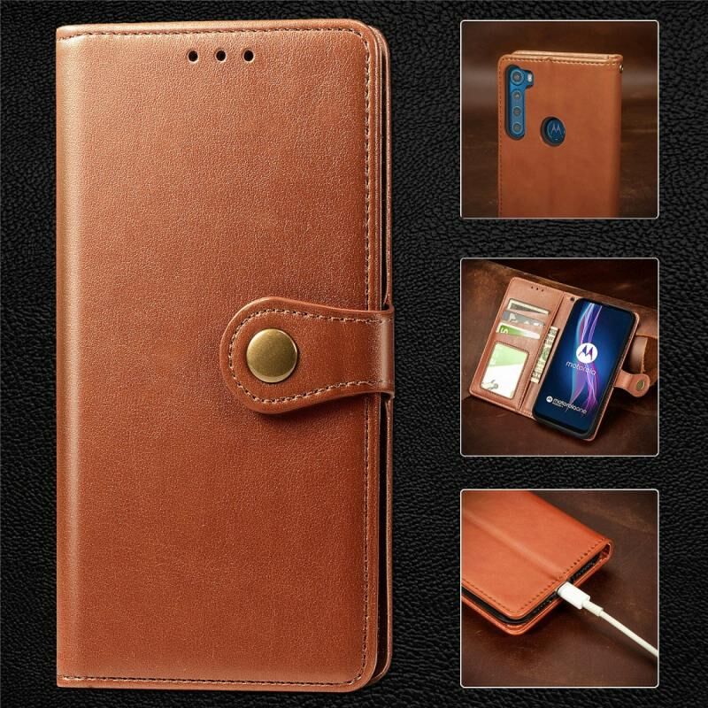 Για Motorola One Fusion Plus Ρετρό στερεό χρώμα δερμάτινη θήκη με αγκράφα με κορδόνι & πλαίσιο φωτογραφιών & υποδοχή κάρτας & πορτοφόλι & λειτουργία στάσης (καφέ)