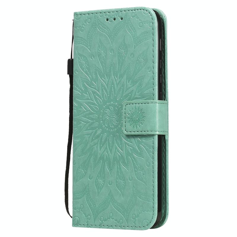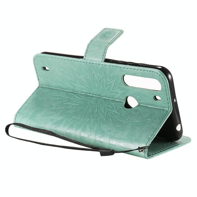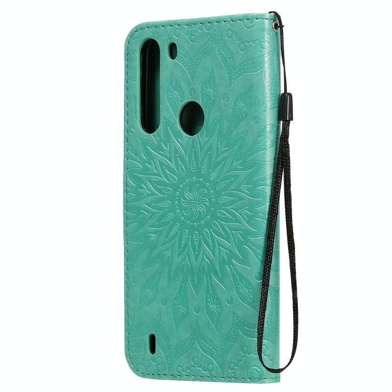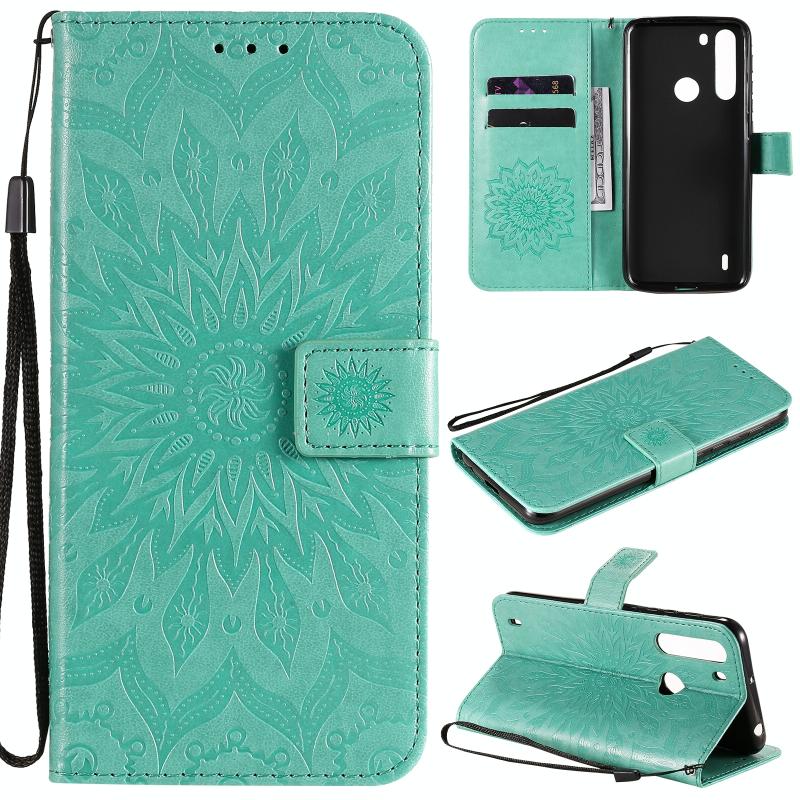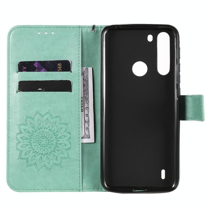 For Motorola One Fusion Pressed Printing Sunflower Pattern Horizontal Flip PU Leather Case with Holder & Card Slots & Wallet & Lanyard(Green)