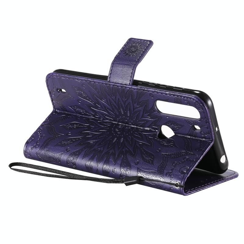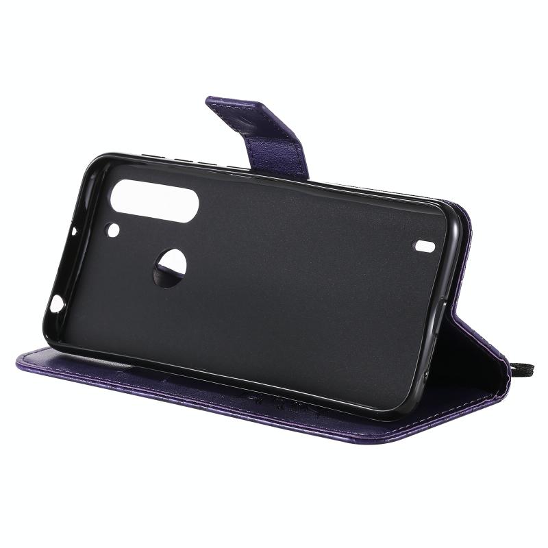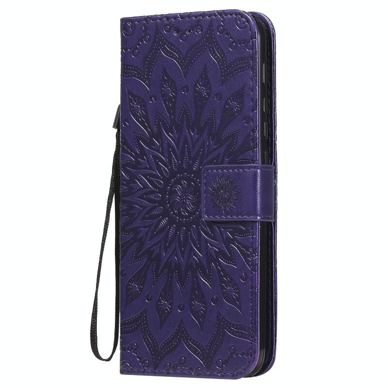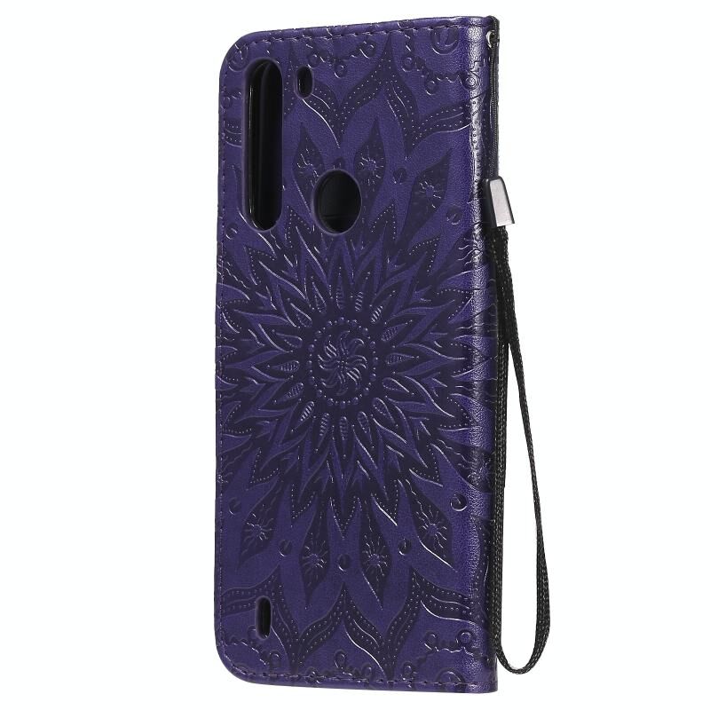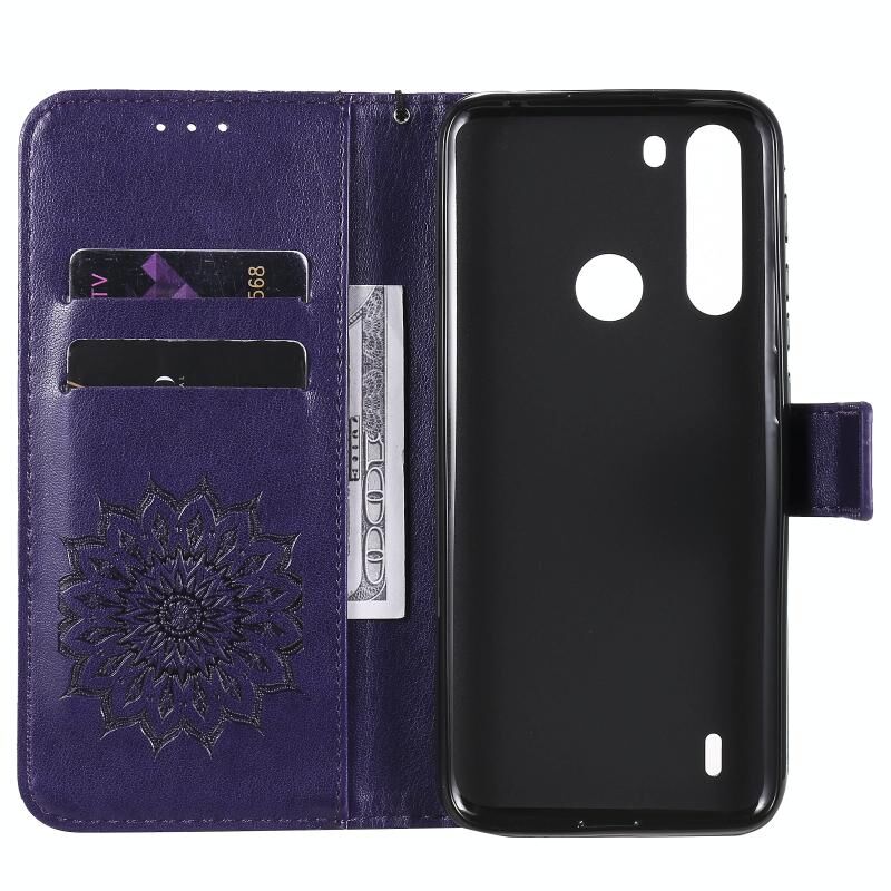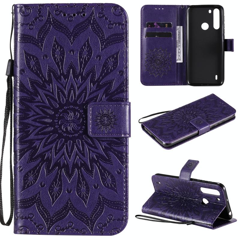 For Motorola One Fusion Pressed Printing Sunflower Pattern Horizontal Flip PU Leather Case with Holder & Card Slots & Wallet & Lanyard(Purple)