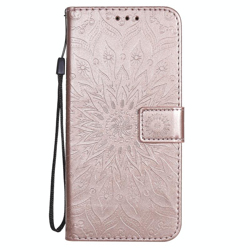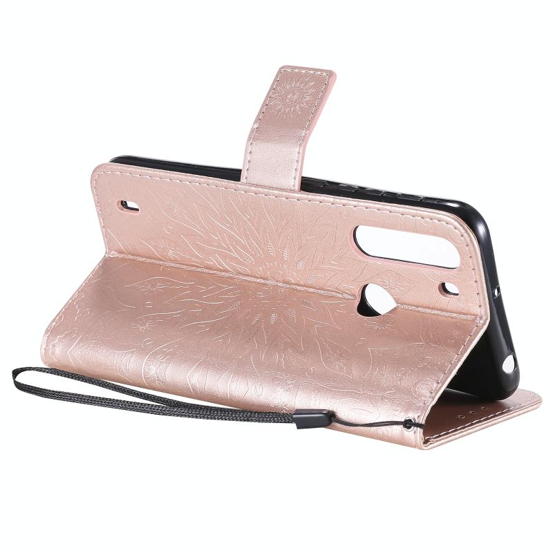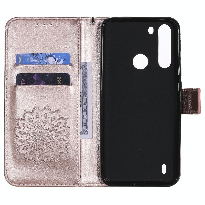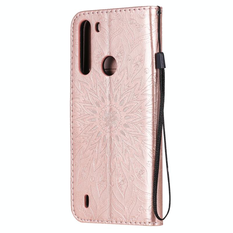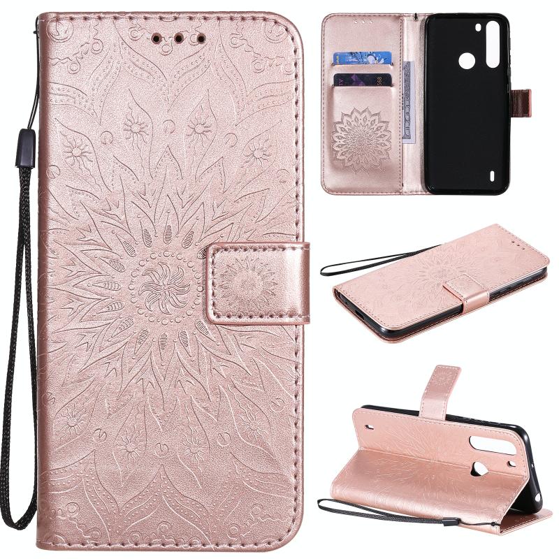 For Motorola One Fusion Pressed Printing Sunflower Pattern Horizontal Flip PU Leather Case with Holder & Card Slots & Wallet & Lanyard(Rose Gold)