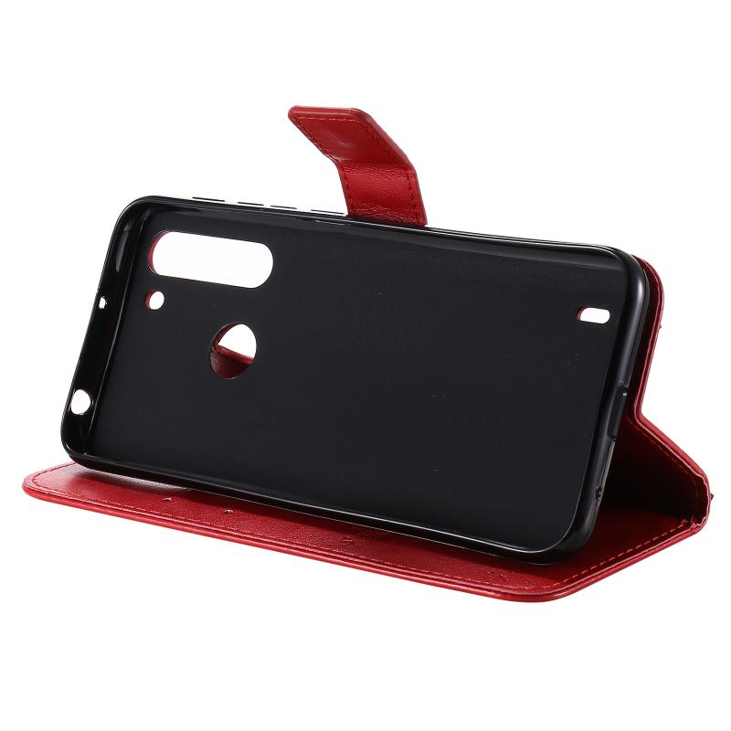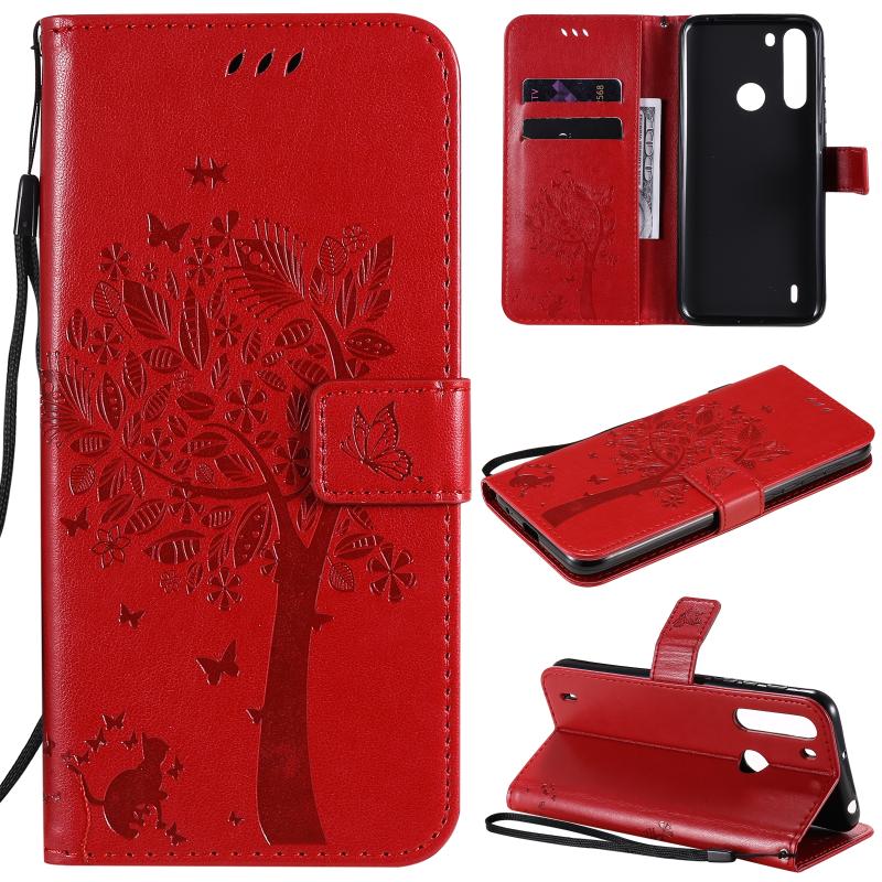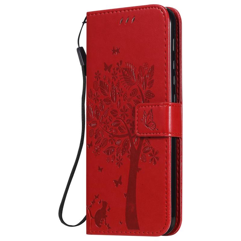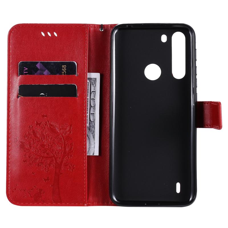 Θήκη για Motorola One Fusion με σχέδιο Δέντρου & Γάτας, εκτύπωση με πίεση, οριζόντια αναδίπλωση, από δερματίνη PU με βάση & υποδοχές καρτών & πορτοφόλι & κορδόνι (Μαύρο)