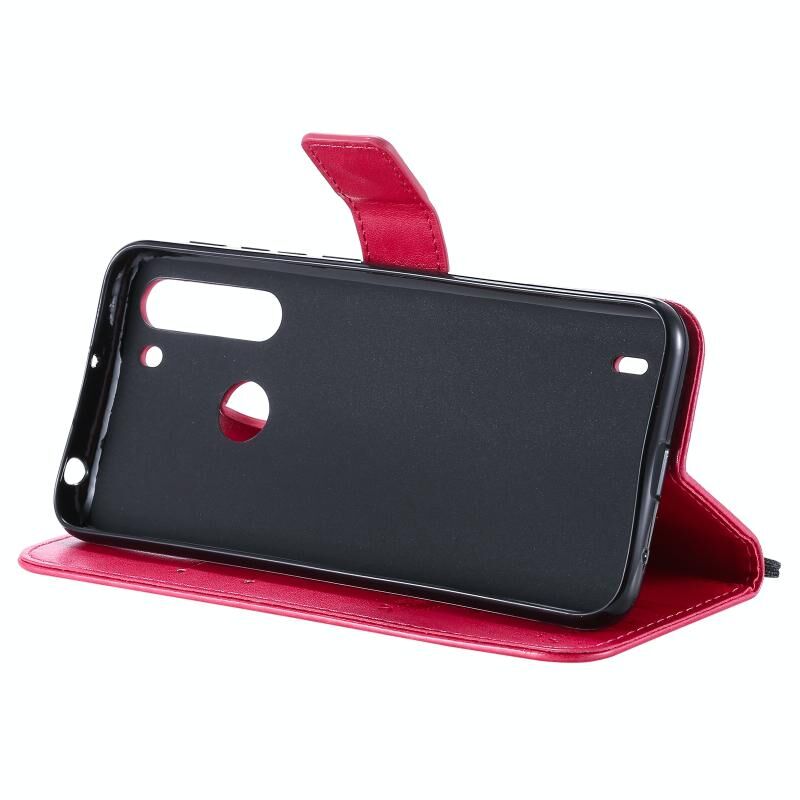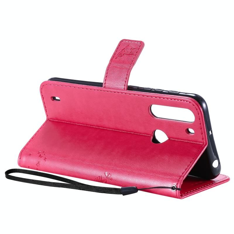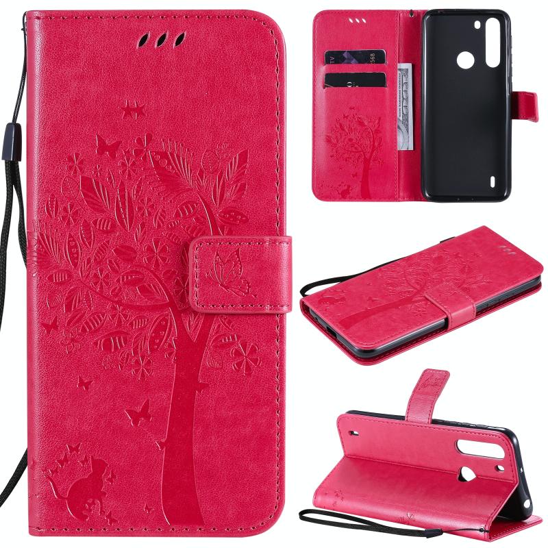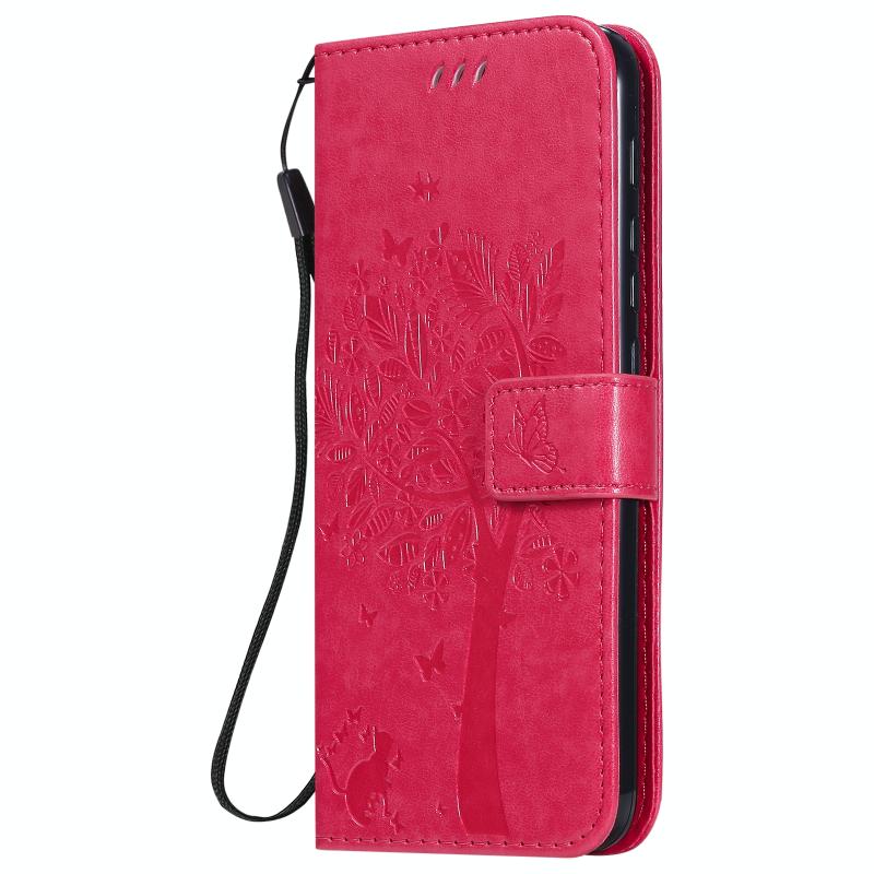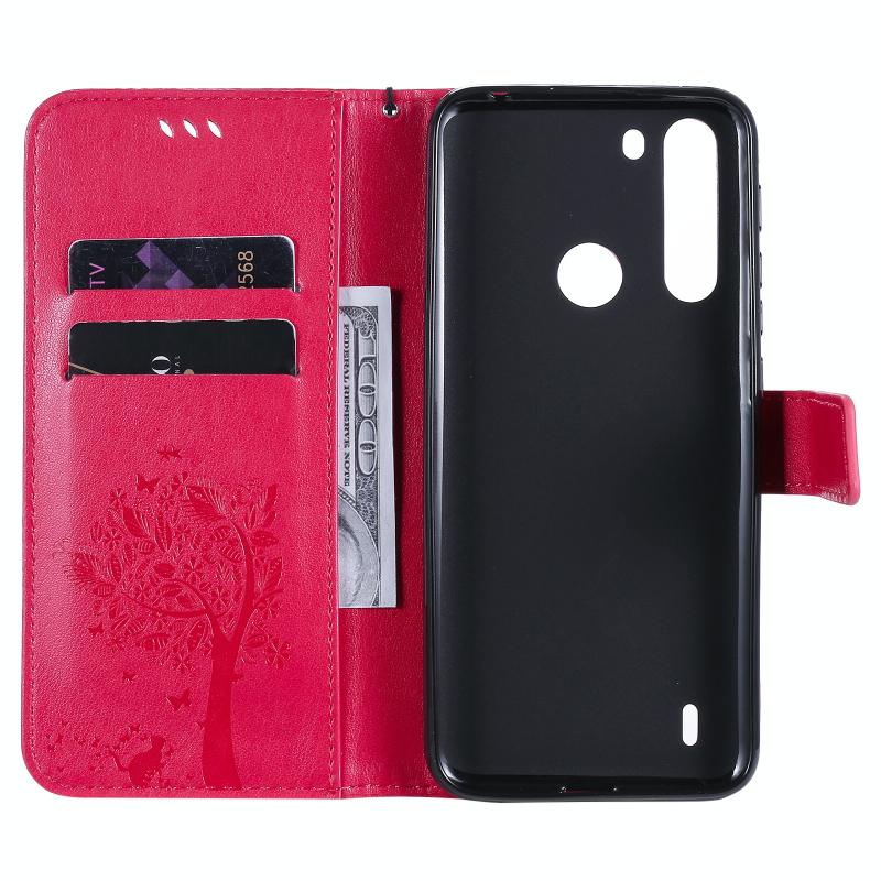 Θήκη για Motorola One Fusion με σχέδιο Δέντρου & Γάτας, εκτύπωση με πίεση, οριζόντια αναδίπλωση, από δερματίνη PU με βάση & υποδοχές καρτών & πορτοφόλι & κορδόνι (Μαύρο)