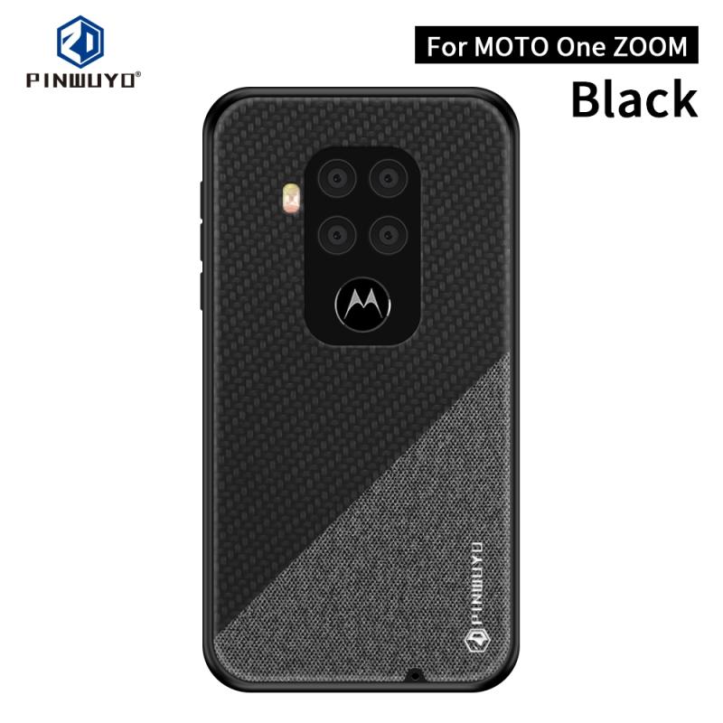 For Motorola One Zoom / One Pro PINWUYO Rong Series Shockproof PC + TPU+ Chemical Fiber Cloth Protective Cover(Black) (PINWUYO)