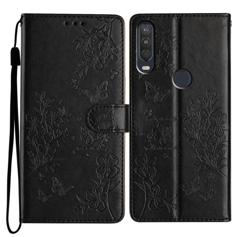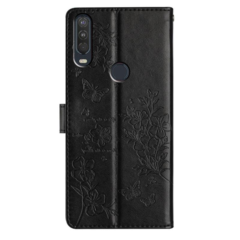 For Motorola P40 Power Butterflies and Flowers Leather Phone Case(Black)