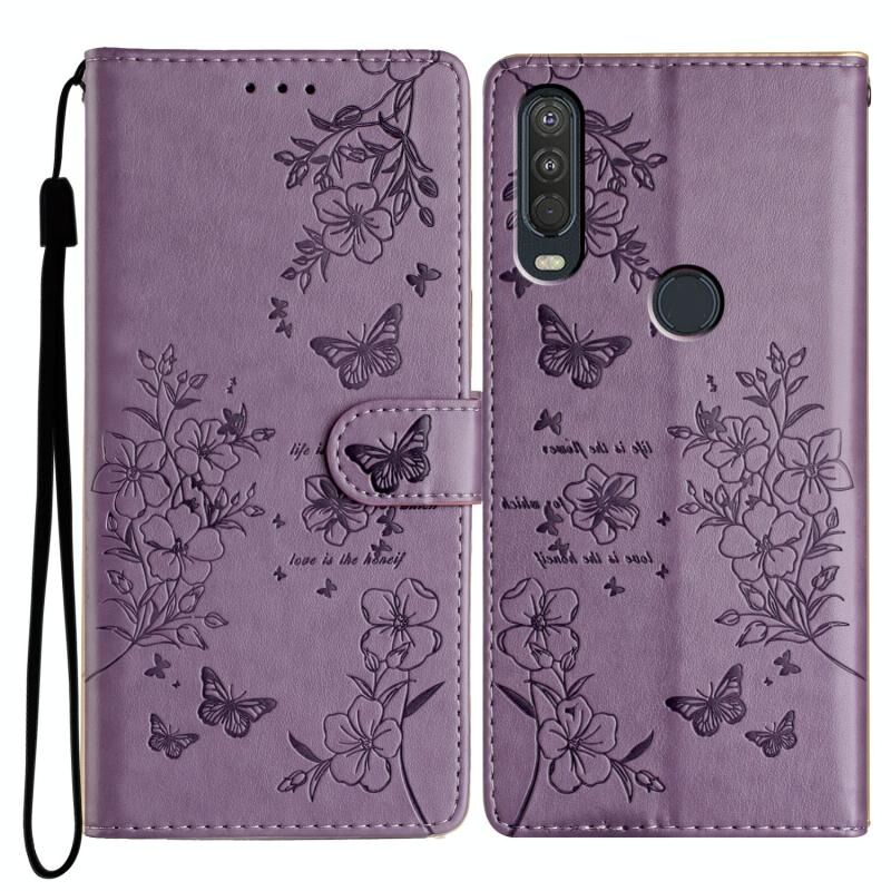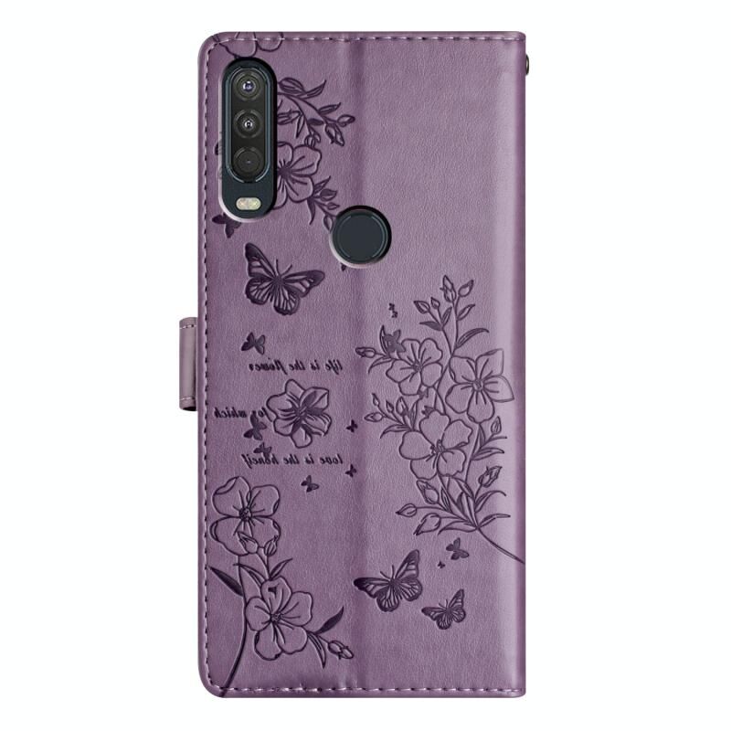 Θήκη τηλεφώνου δερμάτινη για Motorola P40 Power Butterflies and Flowers (Χρυσό)