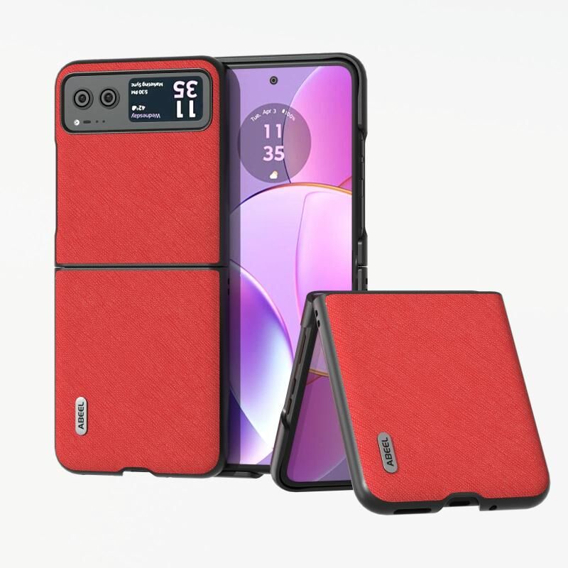 Θήκη κινητού τηλεφώνου από γνήσιο δέρμα με ανάγλυφη υφή για Motorola Razr 40 ABEEL (Κόκκινο)