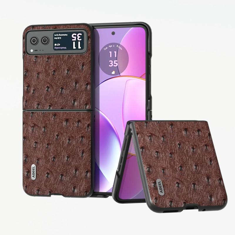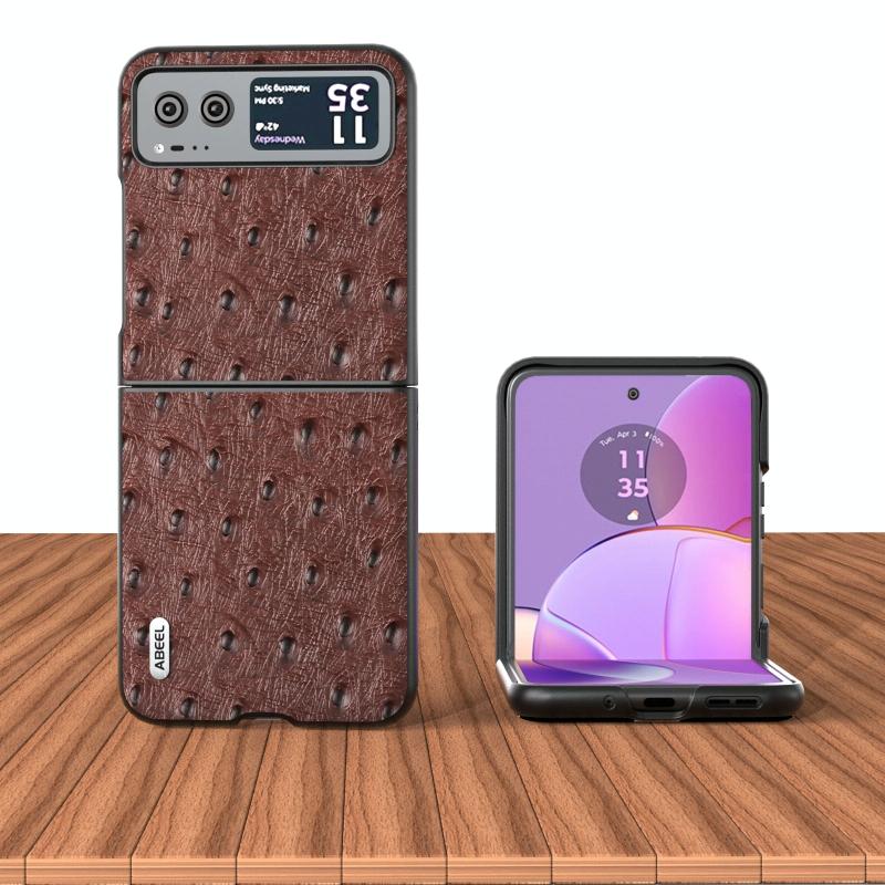 Θήκη κινητού από γνήσιο δέρμα με υφή στρουθοκάμπου για Motorola Razr 40 ABEEL (Καφέ)