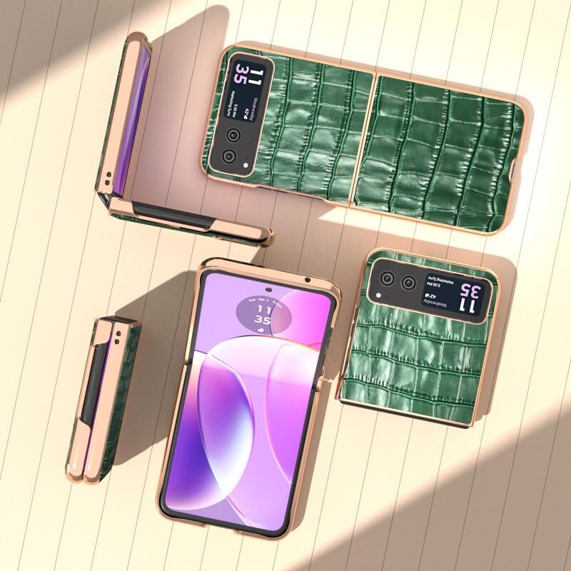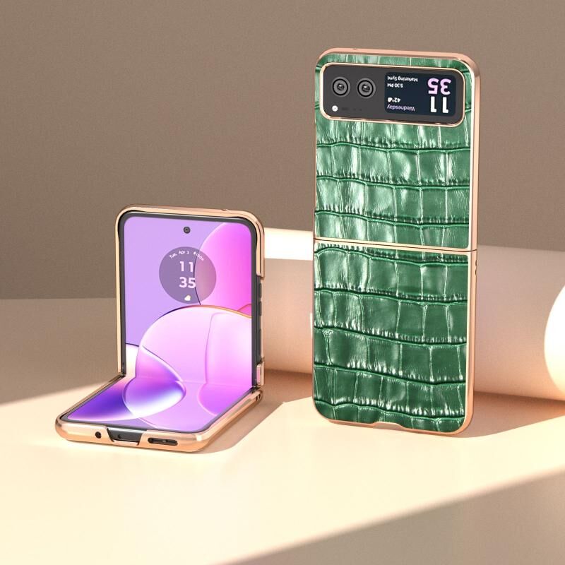 Θήκη κινητού τηλεφώνου Motorola Razr 40 με υφή κροκόδειλου, γνήσιο δέρμα και ηλεκτρολυτική επικάλυψη (Μαύρο)